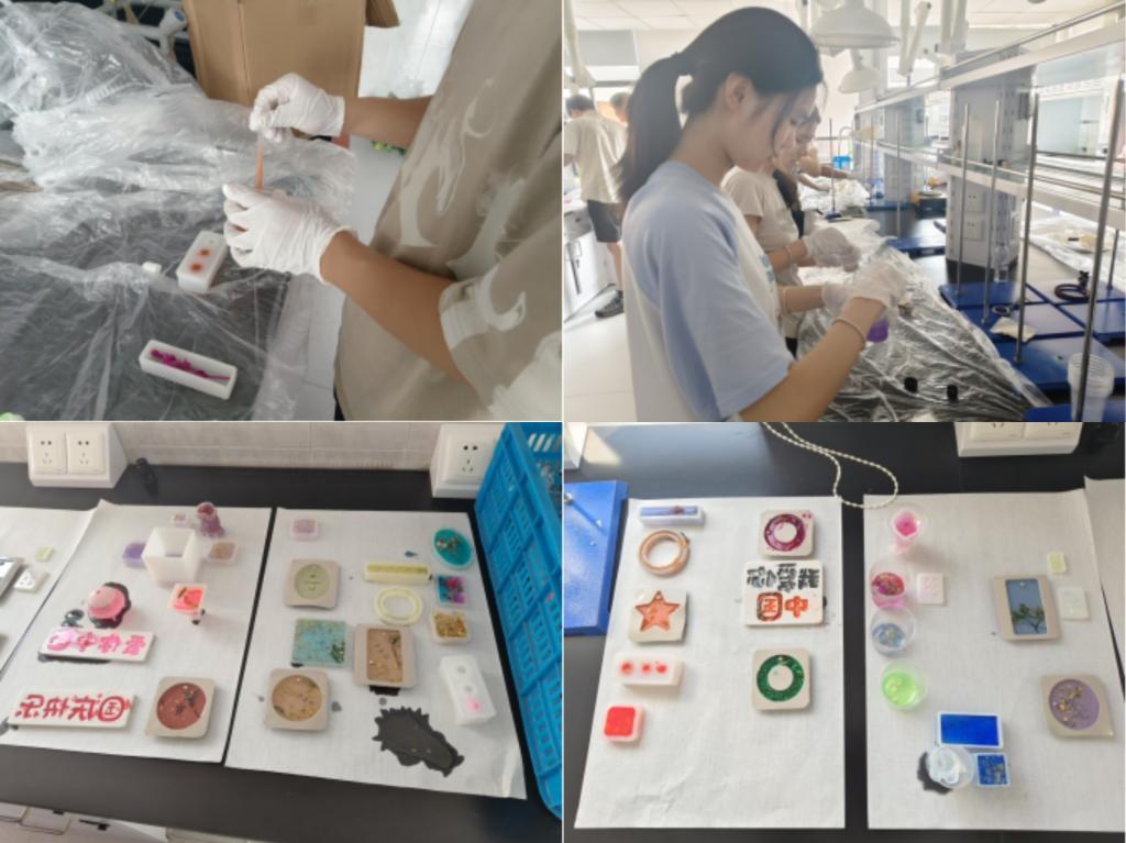学生社团围绕主题,结合专业特色,以展示东方美、中国韵为核心组织策划了“以漆为媒,以扇为纸”漆扇绘制、“一叶知秋,随叶而行”叶脉书签、“藏秋于瓶,携秋迎冬”滴胶工艺主题手工活动,将爱国教育、专业劳动实践教育和美育融于一体。活动一经发出,受到同学们的热烈欢迎,活动参与人数共计150人次,在老师同学们的巧思下诞生了一件件充满创造力的作品,这些作品也承载了大家对祖国的深情厚谊和美好祝愿。