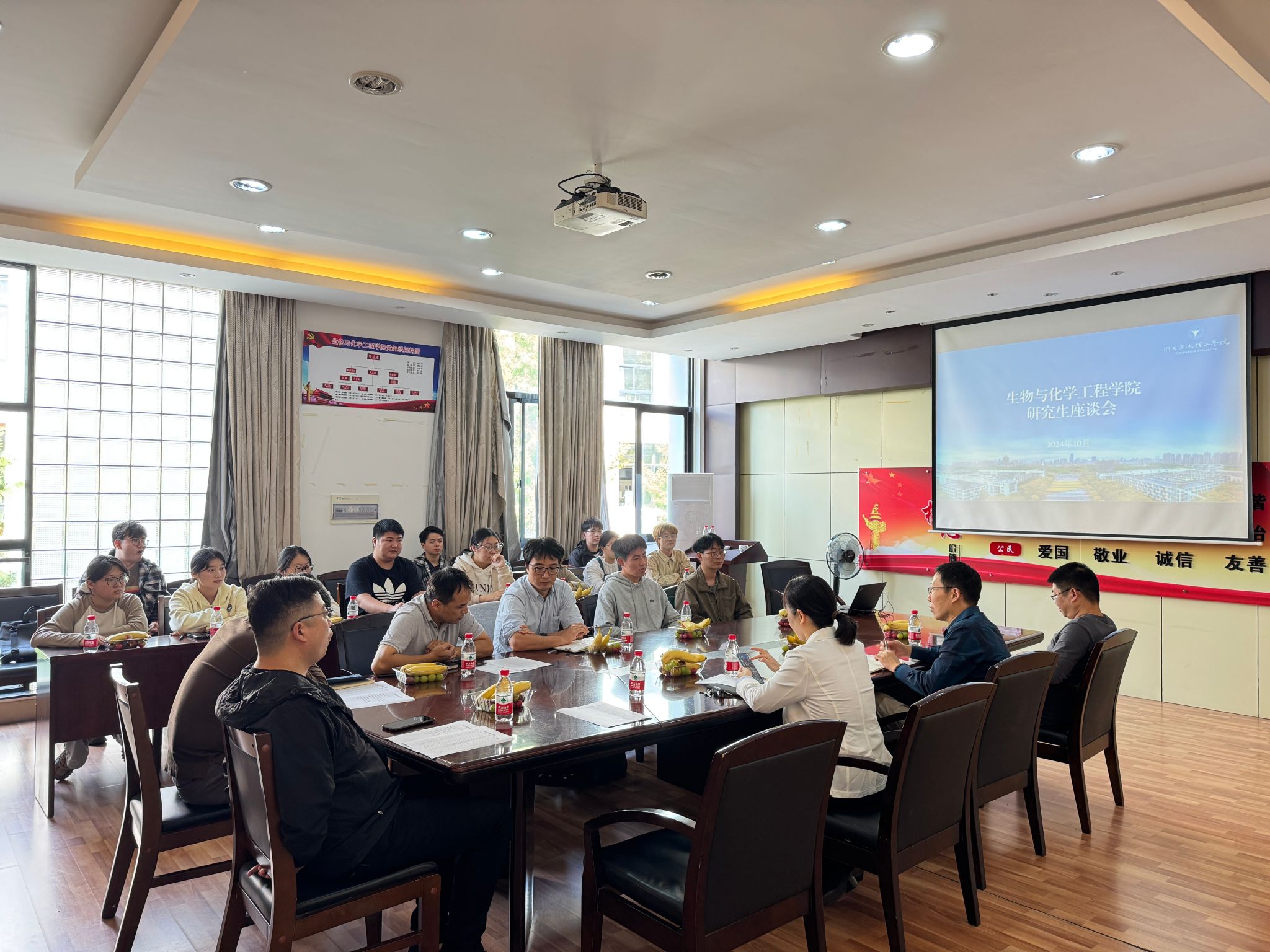 10月10日,生化学院举办研究生开学第一课,副院长王进波,院党委副书记、纪委书记王常青,实验中心副主任毛红雷,部分导师代表,研究生班导师,辅导员,实验室管理员及近20名研究生参会。