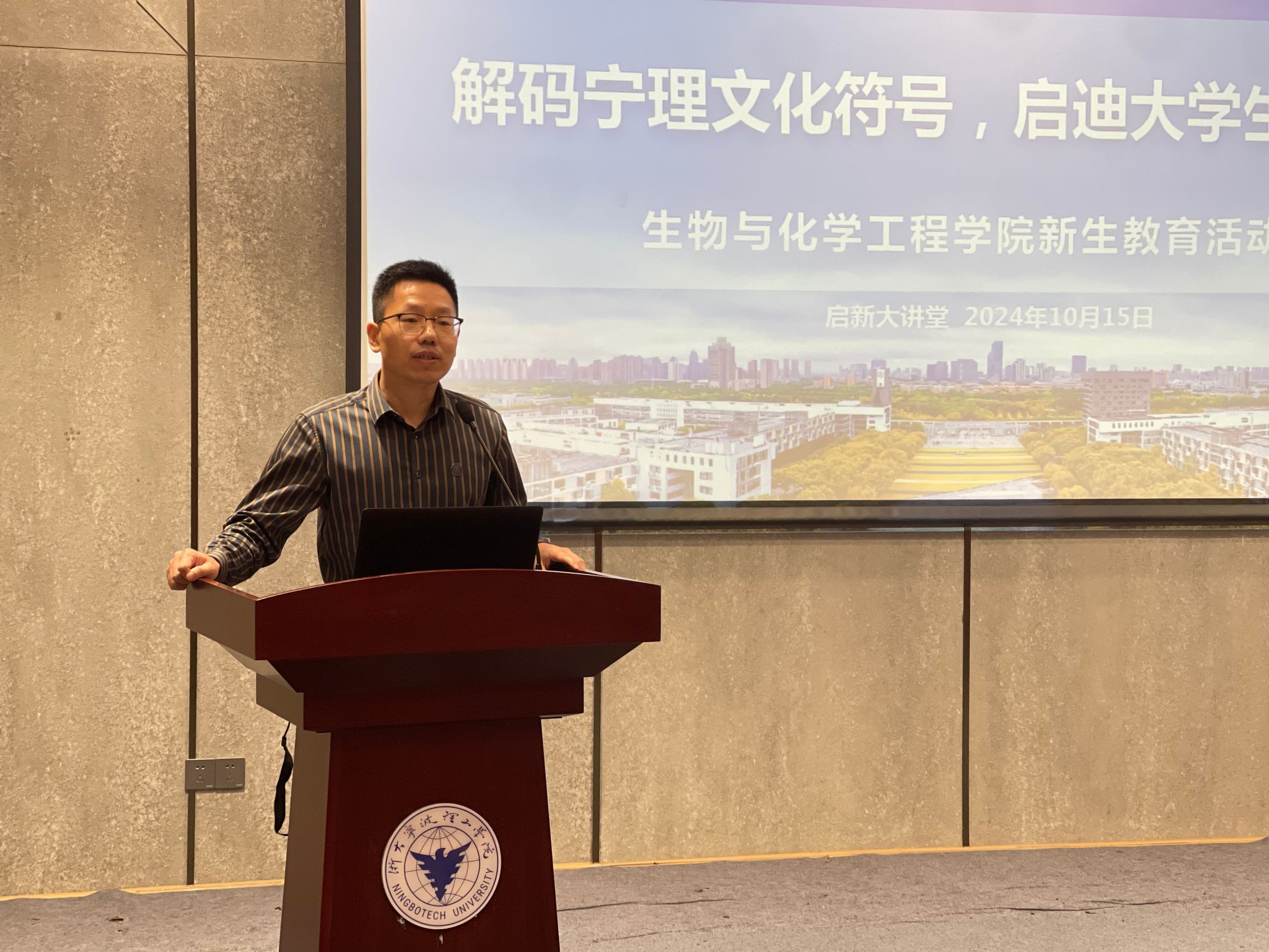 为进一步增进新生对学校文化的理解,引导新生合理规划大学生活,10月15日晚,生化学院于启新大讲堂顺利举办“解码宁理文化符号,启迪大学生活航向”新生教育活动。本次活动邀请到学校党委委员、办公室主任陈斌与学校教务处处长沈昊宇担任主讲嘉宾,生化学院主要负责人以及全体2024级新生参加。此次活动由生化学院党委书记刘哲主持。
