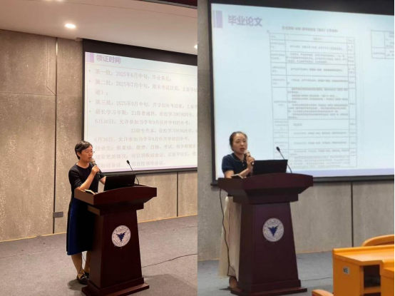 随后,代冬梅和张斐飞老师就同学们毕业事项的相关安排和具体要求进行讲解,并叮嘱同学们要兼顾好实习、考研与毕业论文写作多重事项。段然老师向同学们介绍了2024届毕业生的考研升学和就业情况,并对同学们进行了就业安全与防诈骗教育。