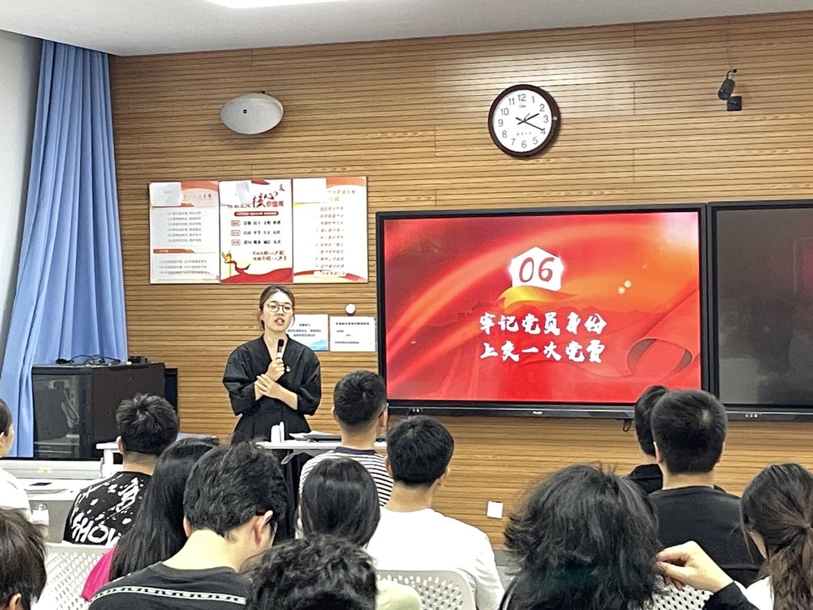 忆初心,践使命,话未来。为进一步加强毕业生党员的党性修养,增强组织观念和纪律意识,做好毕业生党员离校前的教育管理工作,5月21日下午,生化学院面向2024届毕业生全体党员开展了“七个一”主题教育活动。生化学院党委副书记、纪委书记王常青,学生第二党支部书记段然、学生第一党支部副书记钟垚以及学院全体毕业生党员出席。会议由生化学院党委委员、学生第一党支部书记闫雪茹主持。