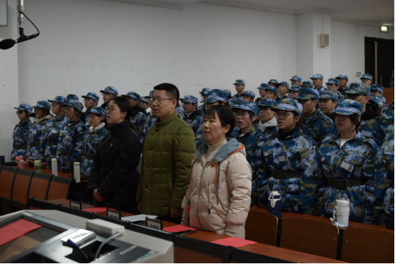 教育课由全体师生高声合唱国歌声开始,教育课上,刘哲书记指出爱国主义教育是党和国家在70 多年光辉历程中团结青年、引领青年、赢得青年的优良传统和政治优势,爱国拥军的思想更要从此刻的军训加强塑造,勉励同学们要胸怀报国之志,秉承“求是”传统,担当民族复兴大任,努力成长为有理想、敢担当、能吃苦、肯奋斗的新时代好青年。