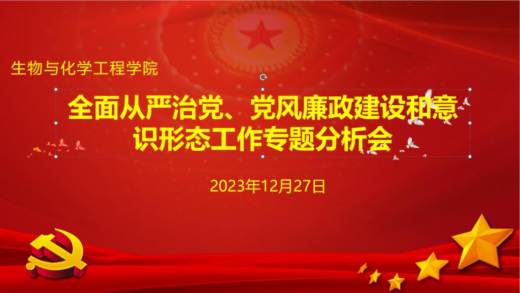 12月27日,生化学院召开2023年下半年全面从严治党、党风廉政建设、意识形态工作等三个专题分析会。学院党委书记刘哲主持会议。
