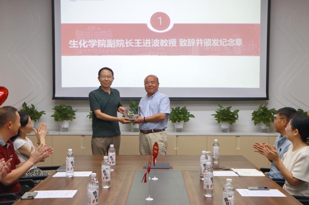 倾尽丹心育桃李,奉献韶华铸师魂。9月22日,生化学院在ND103举行了2023年下半年退休教职工荣休仪式,学院副院长王进波与部分教师以及毕业校友共同为江海亮老师荣休进行座谈。活动由学院党委副书记、工会主席王常青主持。