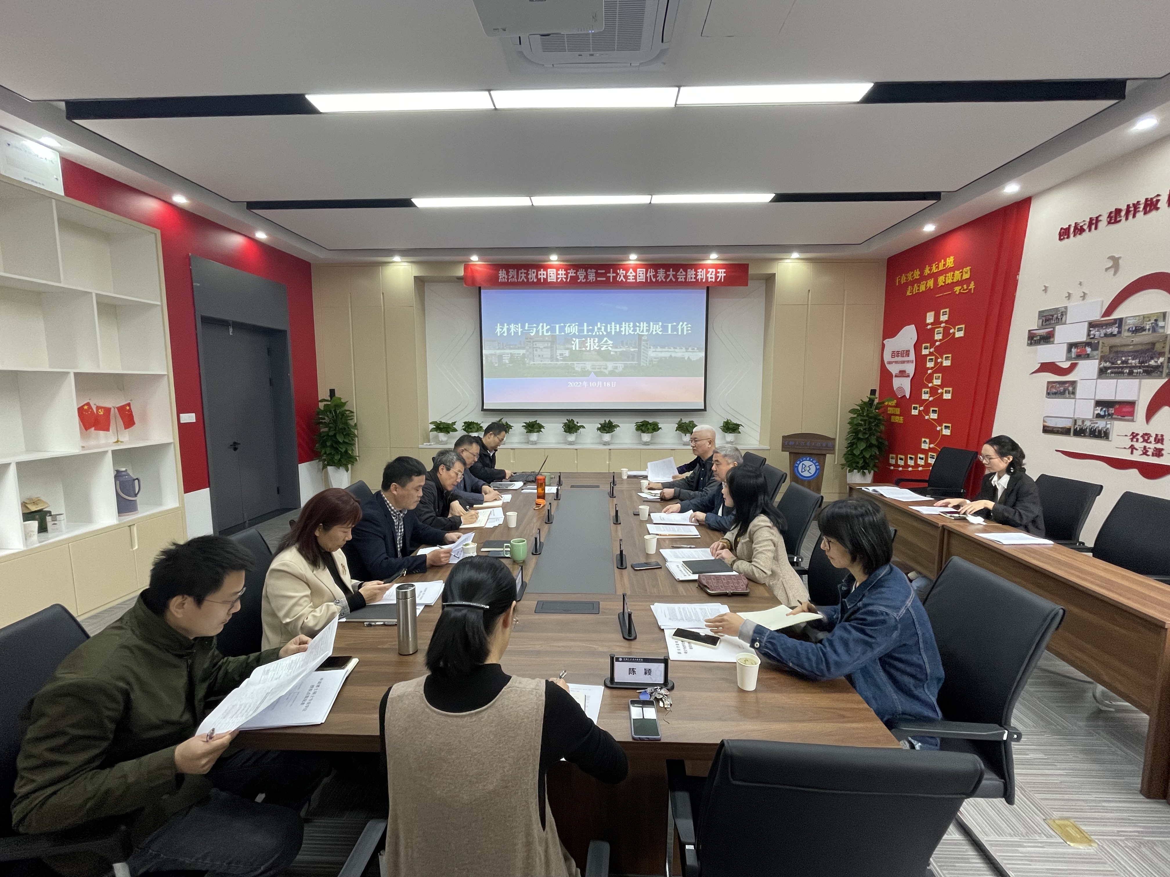10月18日上午,副校长章献民与研究生处处长陈洁云、科研处副处长于在河等一行调研材料与化工专业学位硕士点申请进展情况。硕士点推进工作领导小组成员参加调研座谈会。