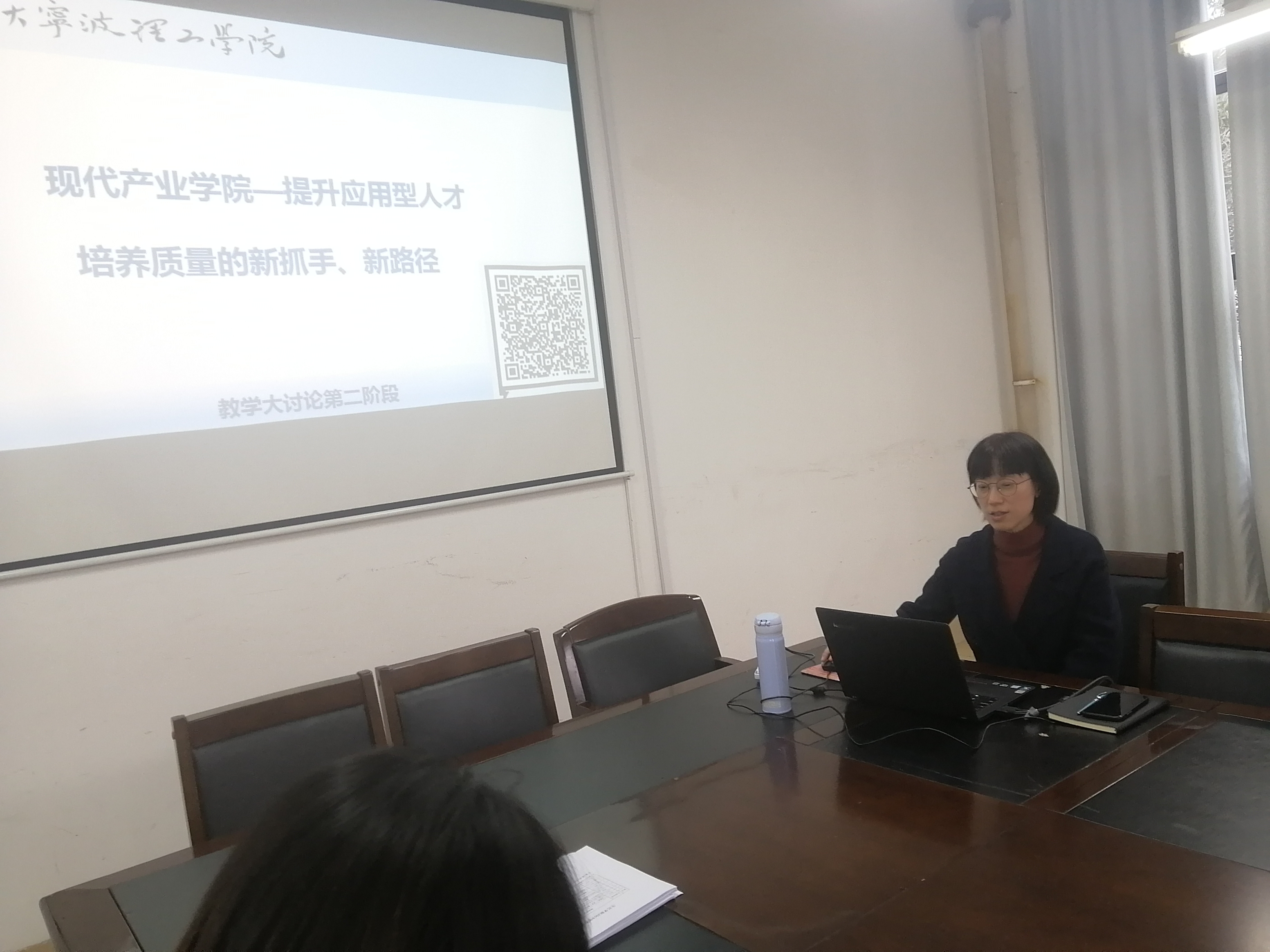 讨论伊始,张艳辉副院长首先为大家介绍本次讨论的背景,并作了题为“产业学院--提升人才质量培养的新抓手、新路径”的报告。报告阐述了产业学院的发展历程和七大建设任务,并以广东东莞理工学院粤台产业科技学院、宁大科技学院慈星智能产业学院为分析案例,让参会人员对于现代产业学院的建设有了较为全面的了解。对标“浙江省本科高校省级现代产业学院认定指标”,提出了建设产业学院的基本思路、基础条件及现阶段需解决的问题。