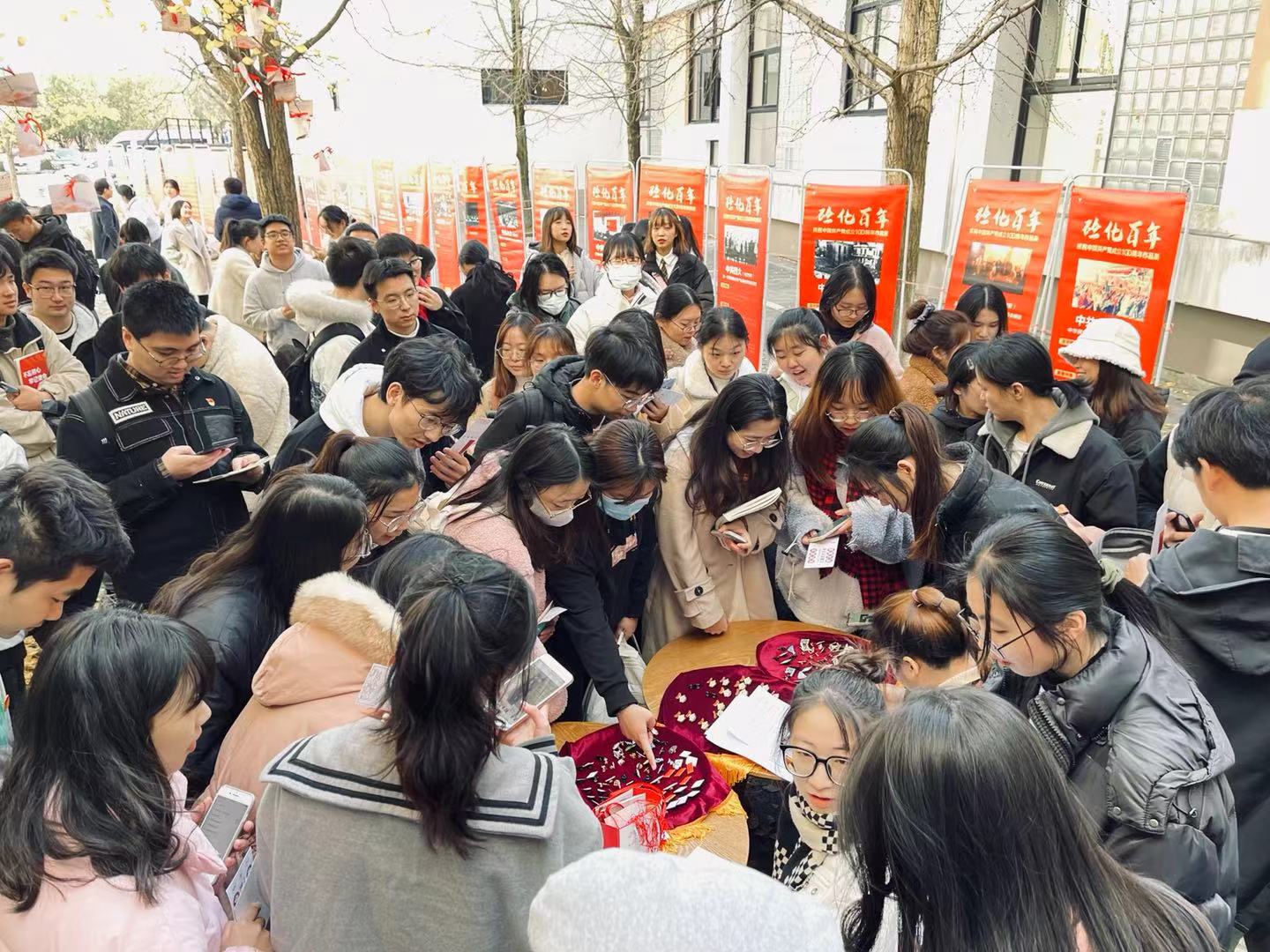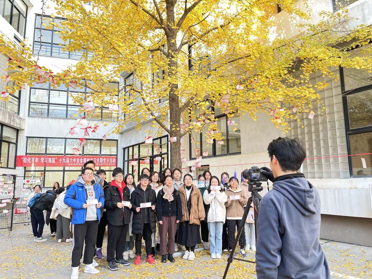 12月1日中午,为深入学习党的十九届六中全会精神,进一步推动学院党史学习教育走深走实,生化学院、土建学院和材料学院在北区银杏林联合举办“砼化百年 学习强国”十九届六中全会精神学习主题党日活动,三个学院师生党员共同参加了本次活动。
