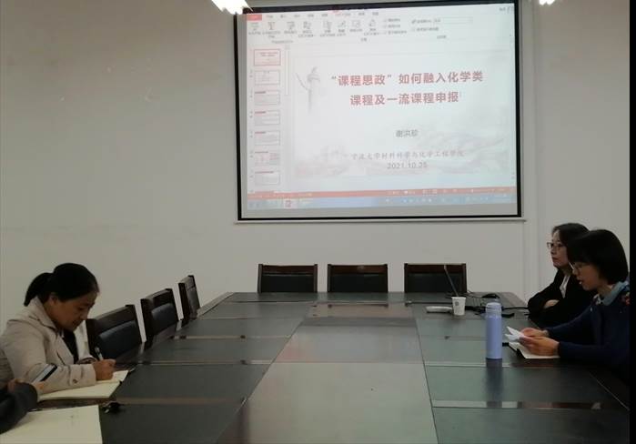 为提升思政课程与课程思政协同育人的实效性,充分发挥思政课堂与课程思政在高效落实立德树人根本任务中的作用,10月25日下午,生化学院举办“课程思政如何融入化学类课程教学及一流课程申报”的讲座。宁波大学材料科学与化学工程学院谢洪珍副教授应邀主讲,学院副院长张艳辉及相关课程教师参加,副院长张艳辉主持。