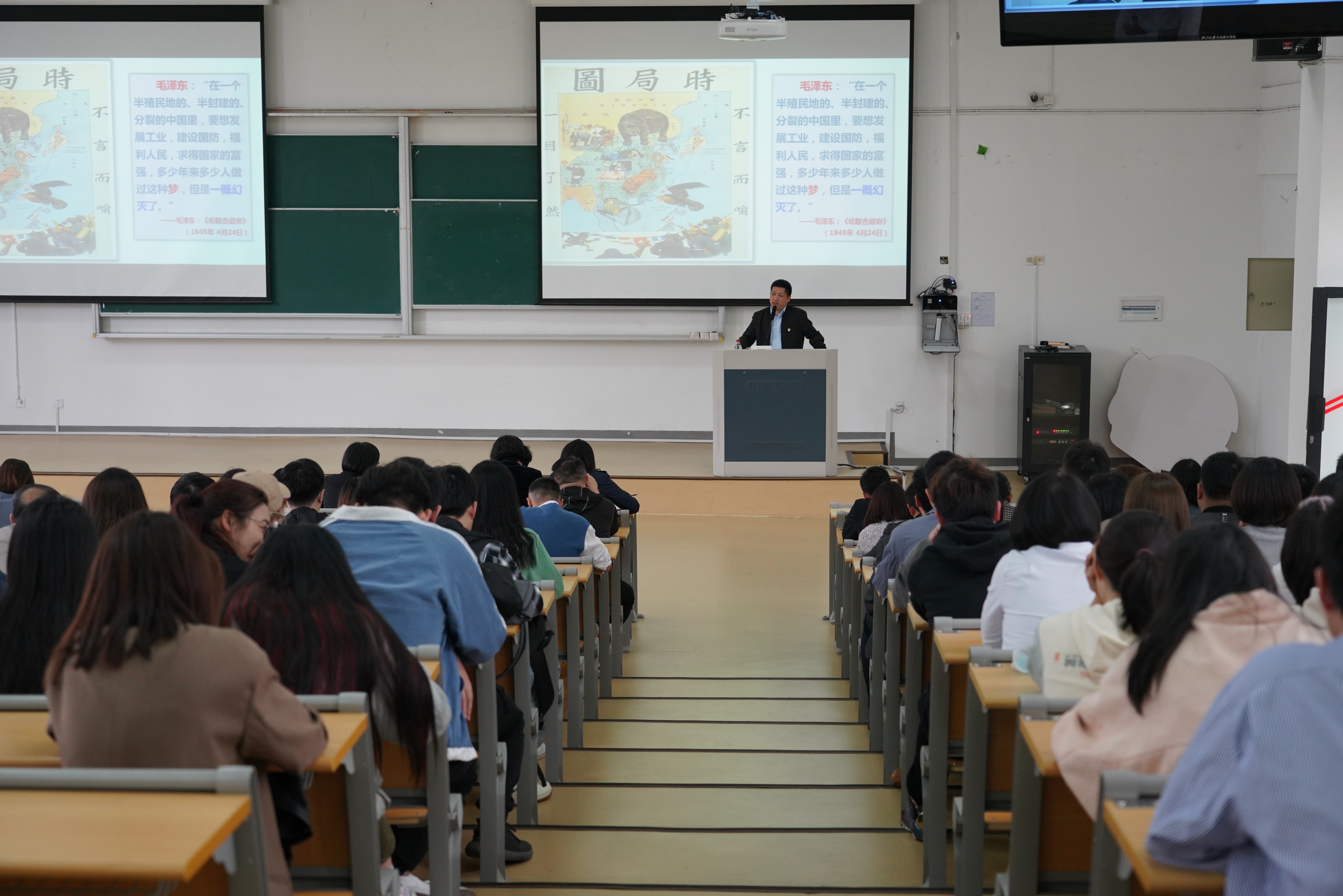 在近两个小时的讲座中,黄立丰副教授聚焦新民主主义革命的光辉历程(1921-1949)这一历史阶段,引经据典、深入浅出地讲述了不同时期中国共产党人形成的坚持正确的发展理念、理论必须联系实际、密切联系群众、推进马克思主义“本本”与中国实际结合、在重要关口敢于担当等优良传统,其中还融合了史实材料、历史图片、人物回忆等资料,为在场师生生动阐释了新民主主义革命时期中国共产党如何依靠优良传统转危为安、从胜利走向胜利的光辉历程。