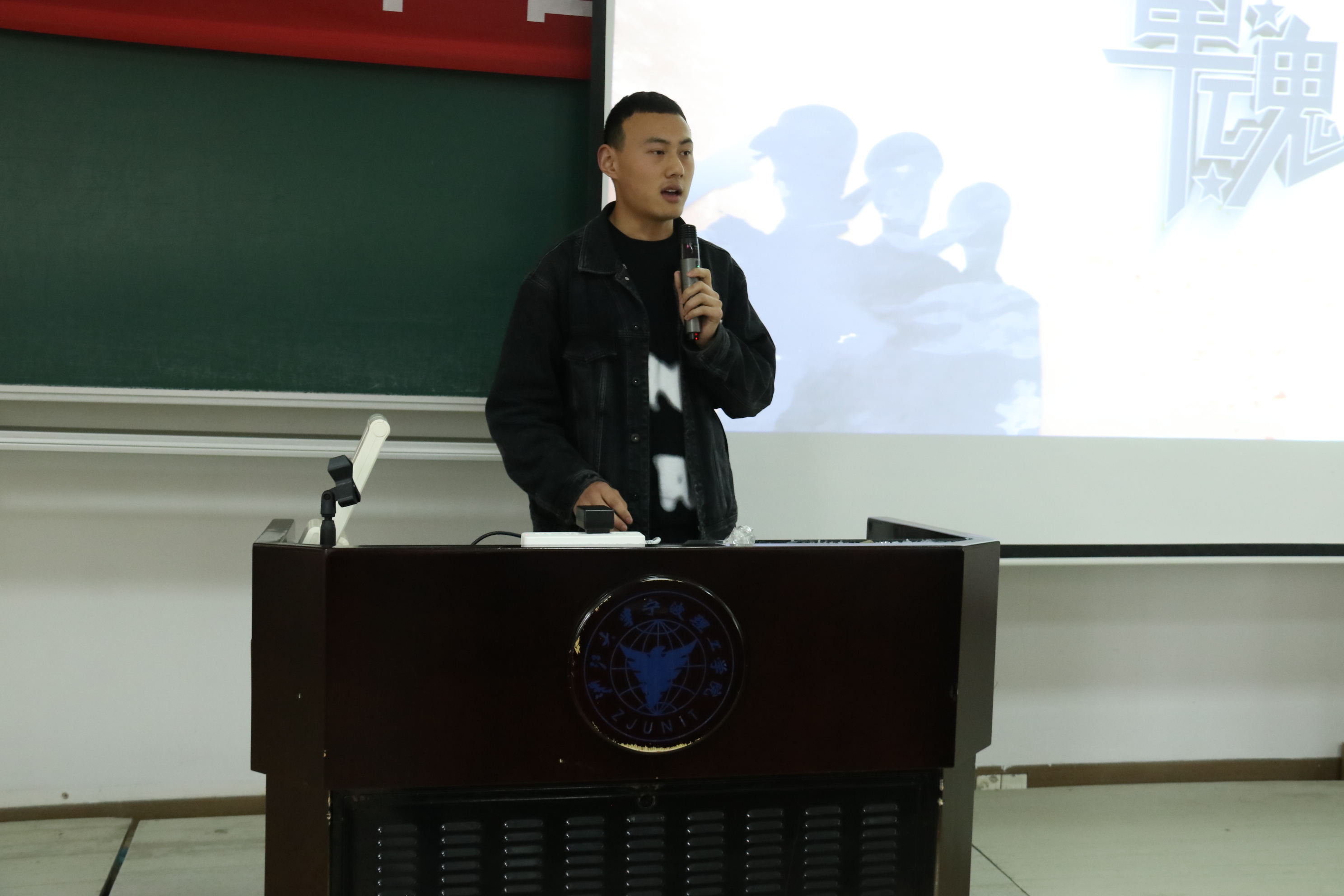 2020年中印冲突期间,生化学院制药工程192班学生薄金阳恰在新疆部队服役。开学第一课特别邀请刚刚从部队回到校园的他,来讲述他的从军故事和青春选择。薄金阳同学高声宣读了他的请战书:“比起生命的可贵,我更追求军人的荣光”!这样浓厚炽烈的爱国情怀与青春激昂的拼搏精神瞬间感染了在座的每一位学生骨干与老师。