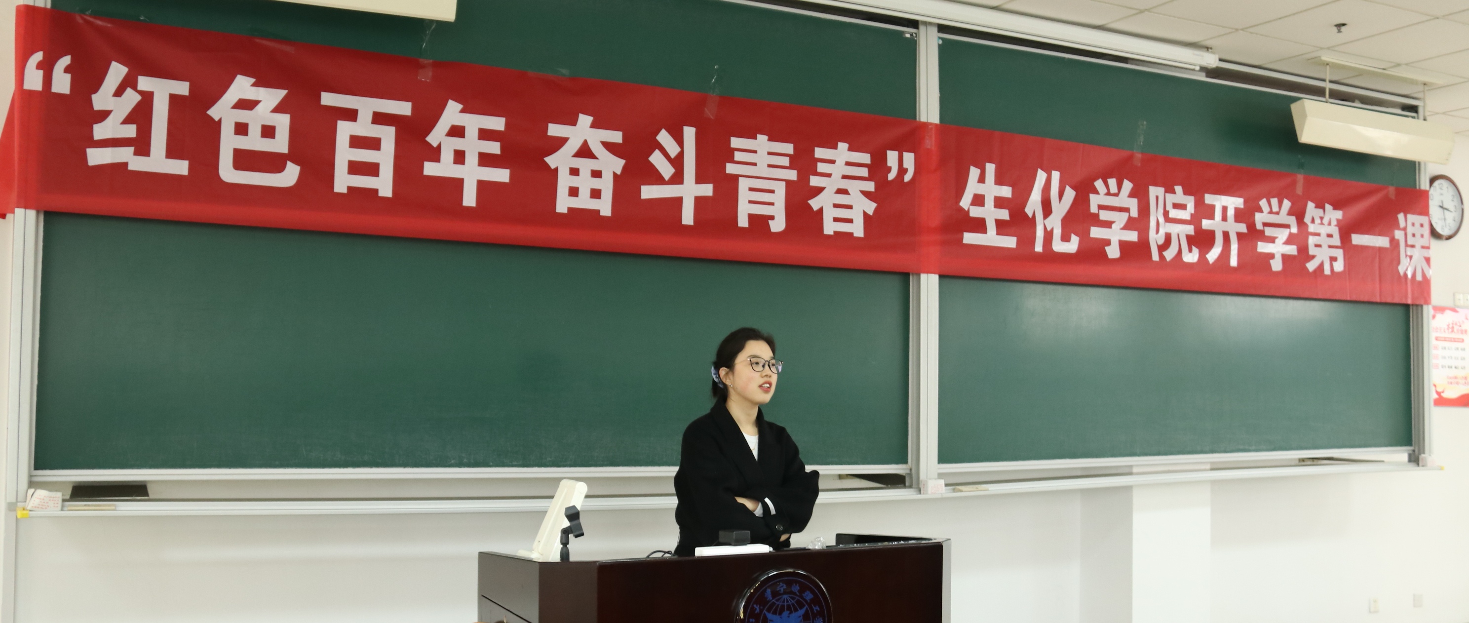 2021年的新学期,承载百年梦想,孕育青春希望。为激励生化学子在两个一百年的交汇点上和十四五规划的新征程中振奋精神、锐意进取,在开学第一周,生化学院开展“红色百年 奋斗青春”开学第一课活动。参加本次会议的有学工办闫雪茹、董文举和张弦三位老师以及学院所有班级干部。