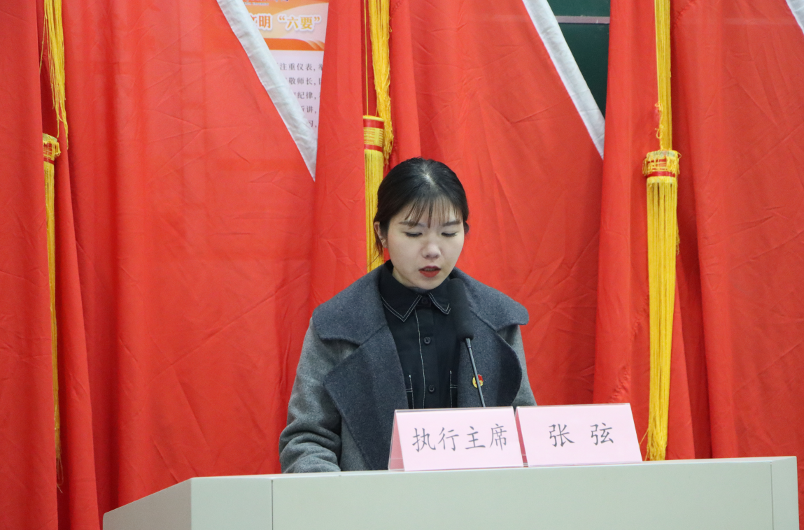 校学生会轮值主席屠婧在祝贺本次大会顺利召开的同时表示学生会组织应积极发挥组织模范带头作用,积极引导带领青年,促进青年团员共同成长共同进步。