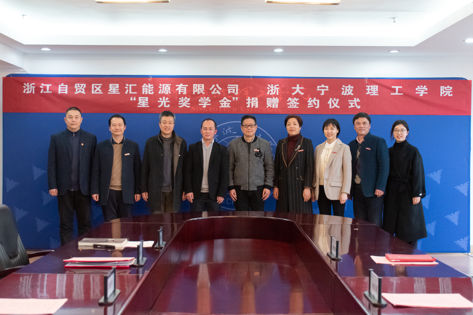 1月21日下午,生物与化学工程学院在行政楼602举行了“星光奖学金”捐赠签约仪式。学校副校长、校教育发展基金会理事长鲁东明,浙江自贸区星汇能源有限公司总经理余晓泉,学工部部长陆亚女,校友办主任陈美芳,生化学院院长方征平,生化学院党委副书记楼文军,以及师生代表参加了签约仪式。仪式由生化学院党委副书记赵涵主持。