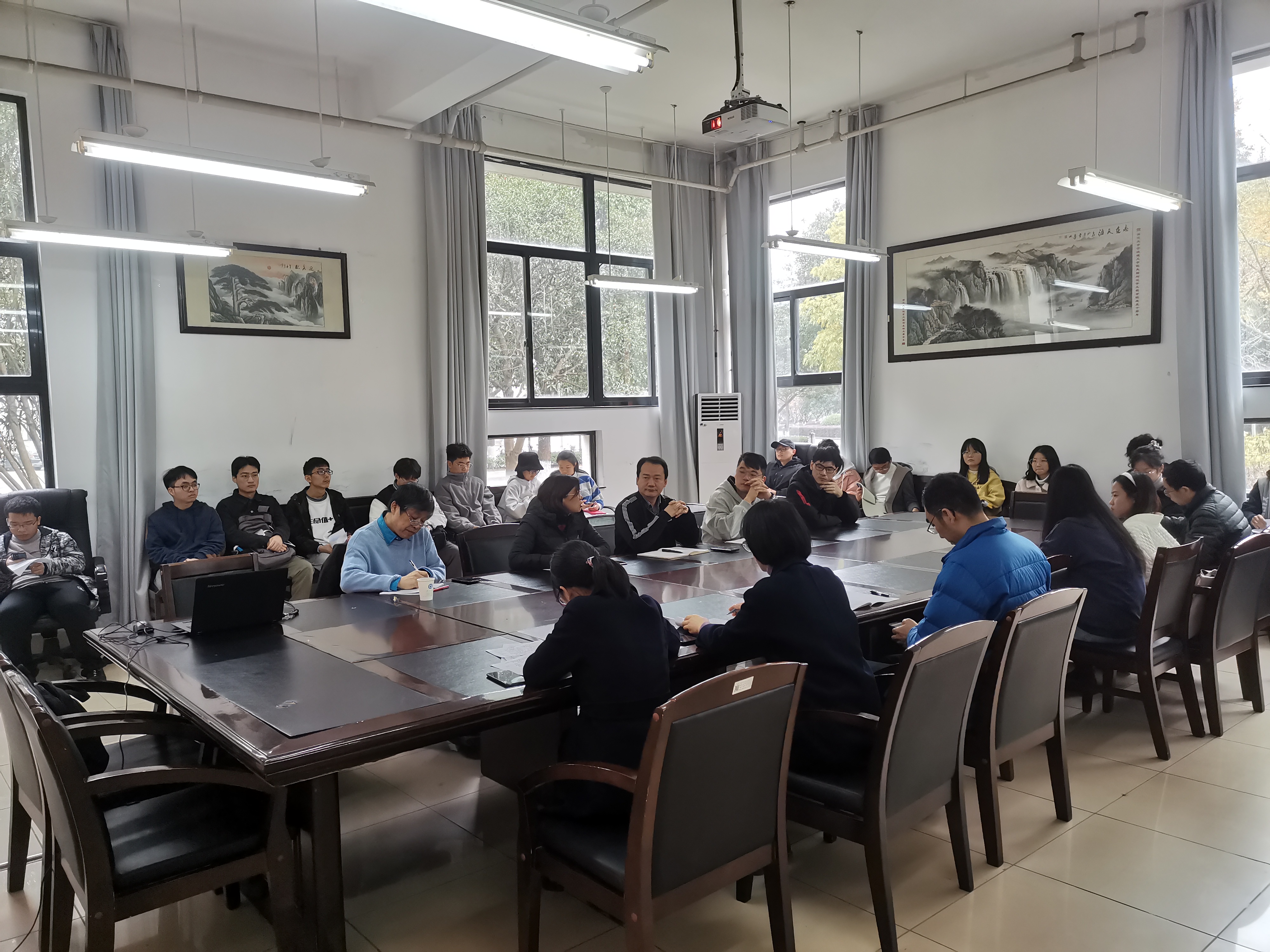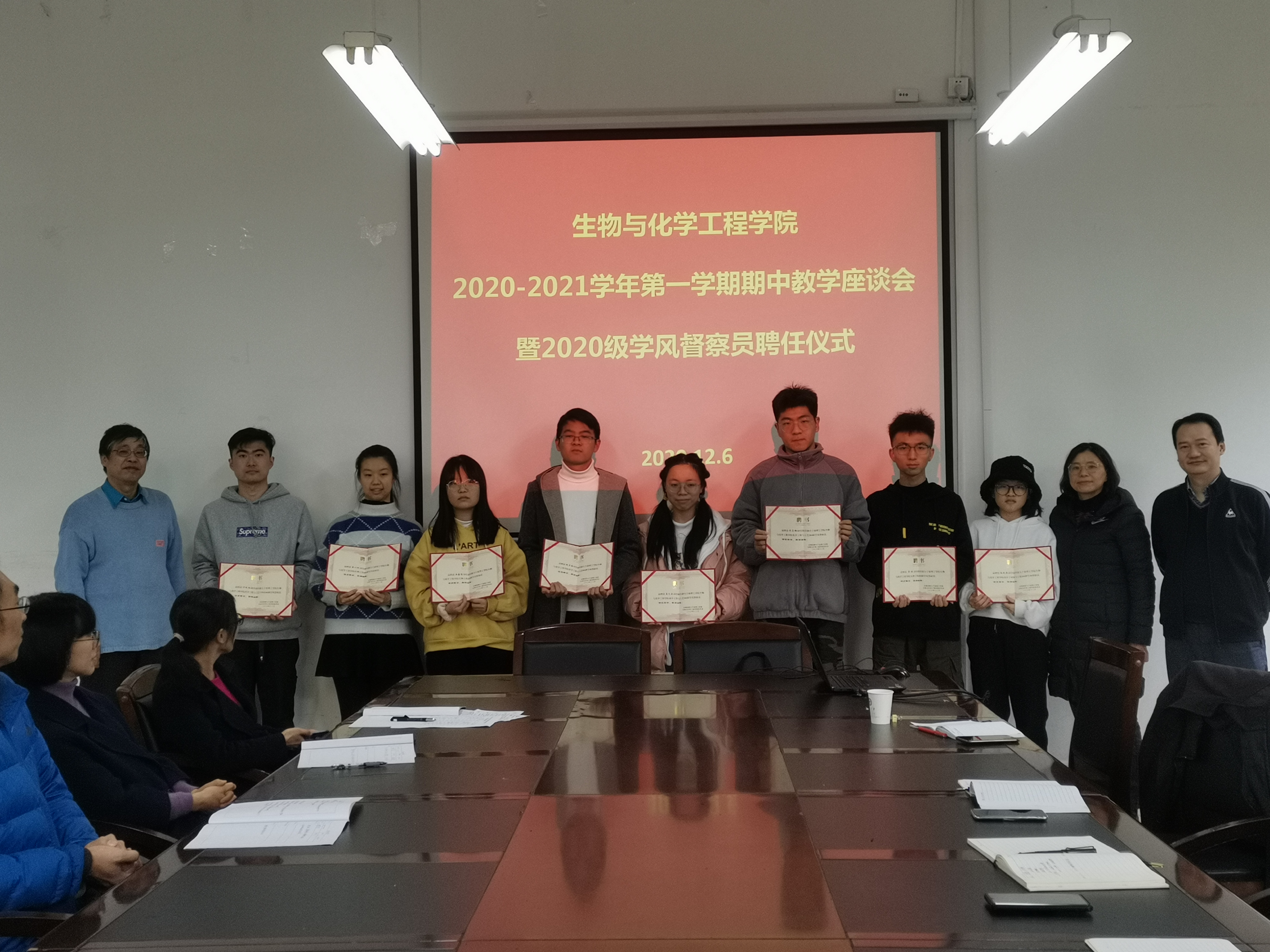 为营造学院良好的学习氛围,全面了解各班的教学情况和学生学习情况,及时发现和解决教学过程中存在的问题,进一步加强班级学风建设,生化学院于2020年12月10日在ND103会议室召开了期中教学检查师生座谈会,会议由院副院长沈昊宇教授主持,出席本次会议的有学校督导郭伟强教授、党委副书记赵涵、各研究所教学副所长、各班的学风督察员以及教务、学工相关老师。