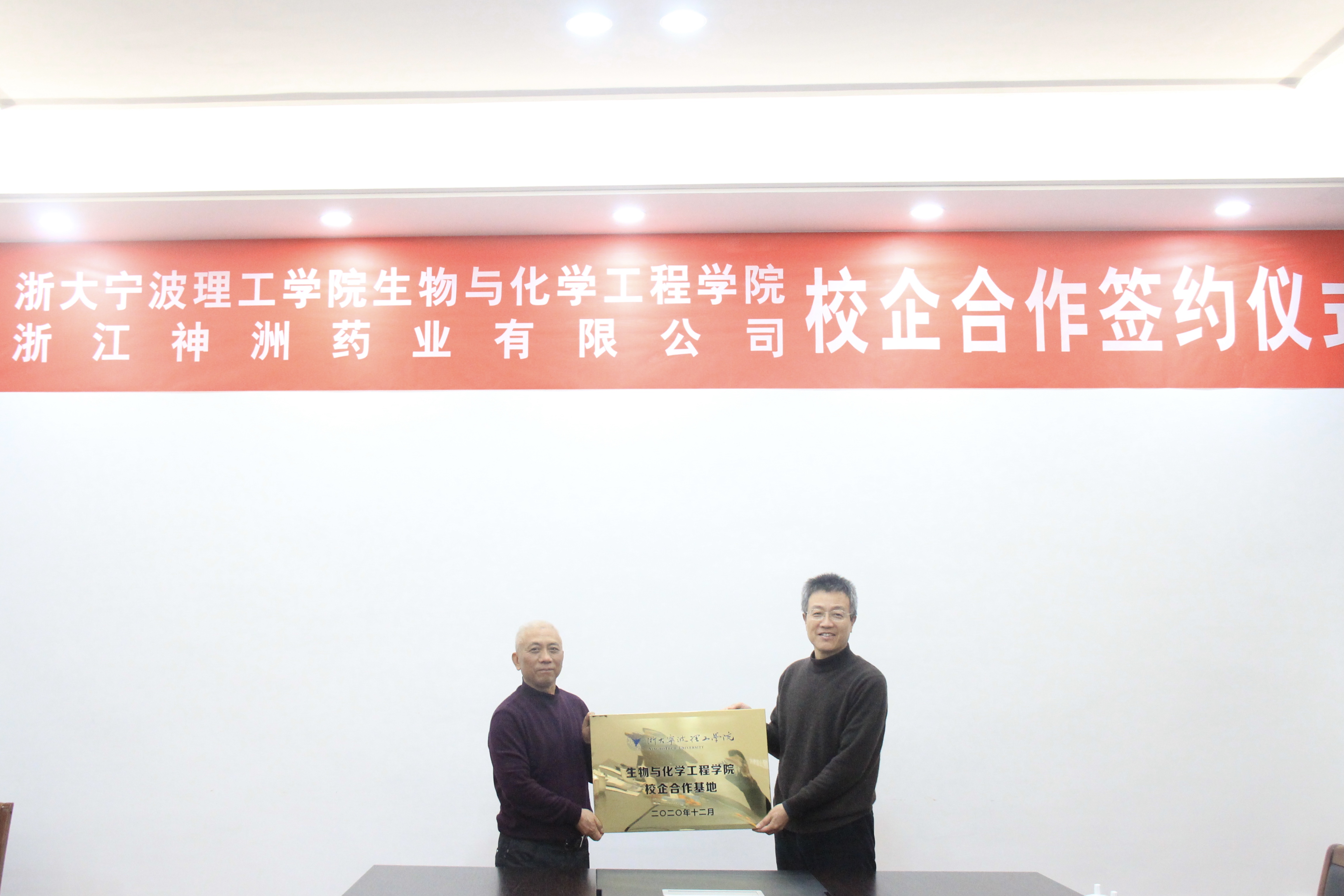 学院一行人在神洲药业董事长王均良和总经理王荣(08届制药工程校友)的带领下先后参观了厂区质检大楼、生产车间和成品仓库,详细了解了企业的运行规模、主营业务和生产流程。在之后的交流会上,王荣进一步介绍了公司的发展历程、组织架构及战略规划。神洲药业作为专业从事医药原料、医药中间体研发、生产、销售、服务与一体的国家级高新技术企业,目前正处于高速发展阶段,怀着共同的理想,已经有多位生化校友加入,形成了一定规模的校友集群,为企业发展凝聚了重要力量。学院院长方征平向企业汇报了近年来学校学院的发展情况以及转公后的办学目标和发展定位,强调转设后学院党委将更加重视校企合作,深化产学研融合建设,将服务校友企业作为学院社会服务的重要输出口,通过深入的校企合作,优化学院新工科人才培养模式,为企业精准输送创新型应用人才。双方就科学研究、技术转化、人才培养和实践实习达成合作共识,签订《校企合作意向书》、成立校企合作基地并授牌。