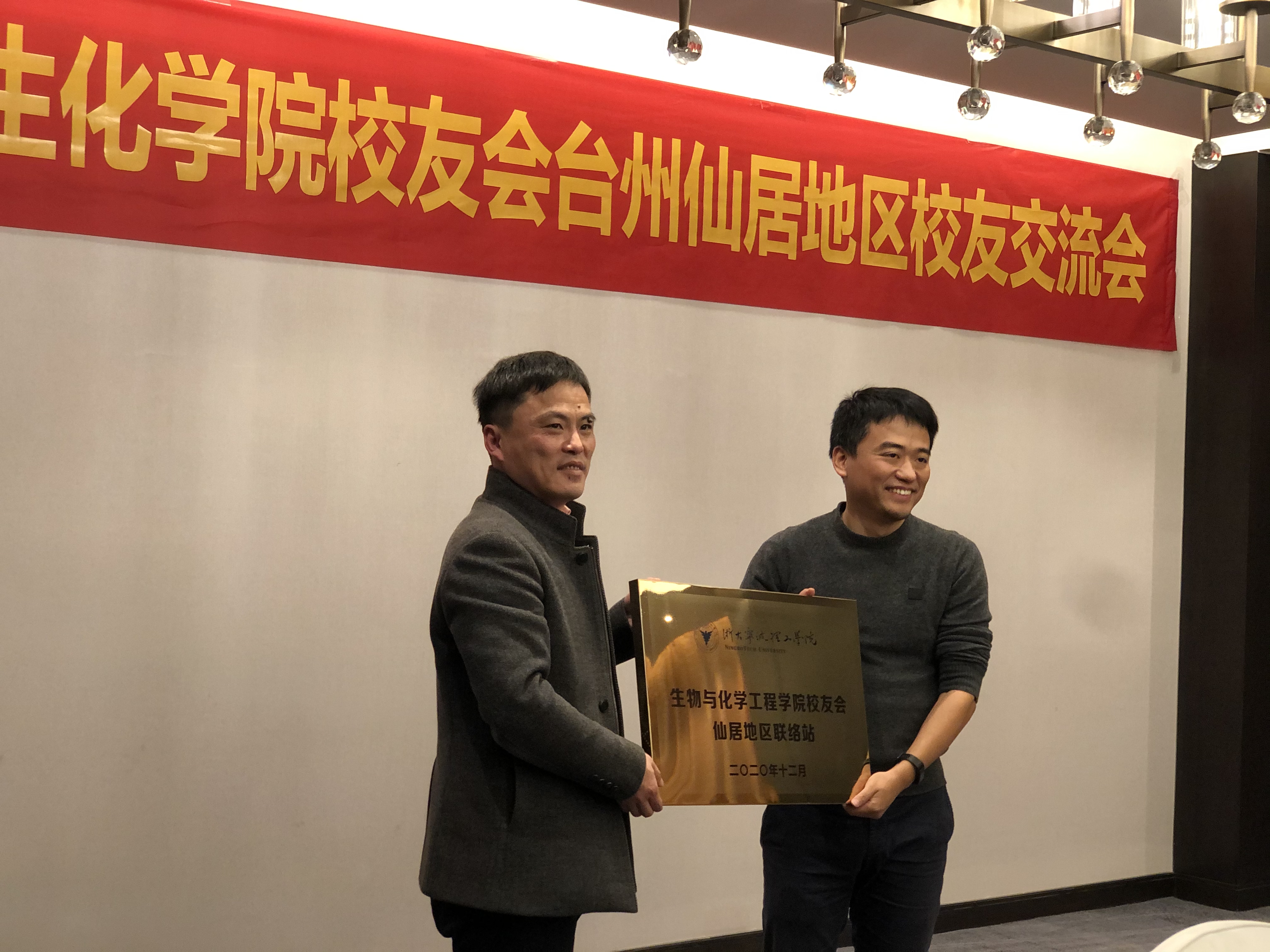 神洲药业总经理王荣作为生化学院优秀校友代表,积极推动仙居地区校友联络,在浙大宁波理工学院校友会副会长、生化学院校友理事会理事毛理江(08届制药校友)的共同推动下,顺利成立了生化学院仙居地区校友联络站,王荣为联络站首任站长,并成功举办了生化学院仙居校友联络站第一次校友会议。会上,站长王荣表示会发挥好联络站的桥梁纽带作用,搭建平台,互通信息,资源共享,为母校和校友、校友和校友的交流合作提供有力保障和支持。学院党委副书记楼文军为仙居地区校友联络站授牌。方院长和楼书记表示希望校友们常回母校看看,对母校的发展多提宝贵意见和建议,一如既往地关心、支持母校的发展,母校也将更好地通过联络站这个平台助力广大校友的事业发展。校友们纷纷赞同,大家畅所欲言,共同回忆起曾经的生化时光和理工故事,表达了加入校友联络站的激动之情,表示将积极为母校的建设建言献策、添砖加瓦,为凝聚校友、服务母校贡献力量。