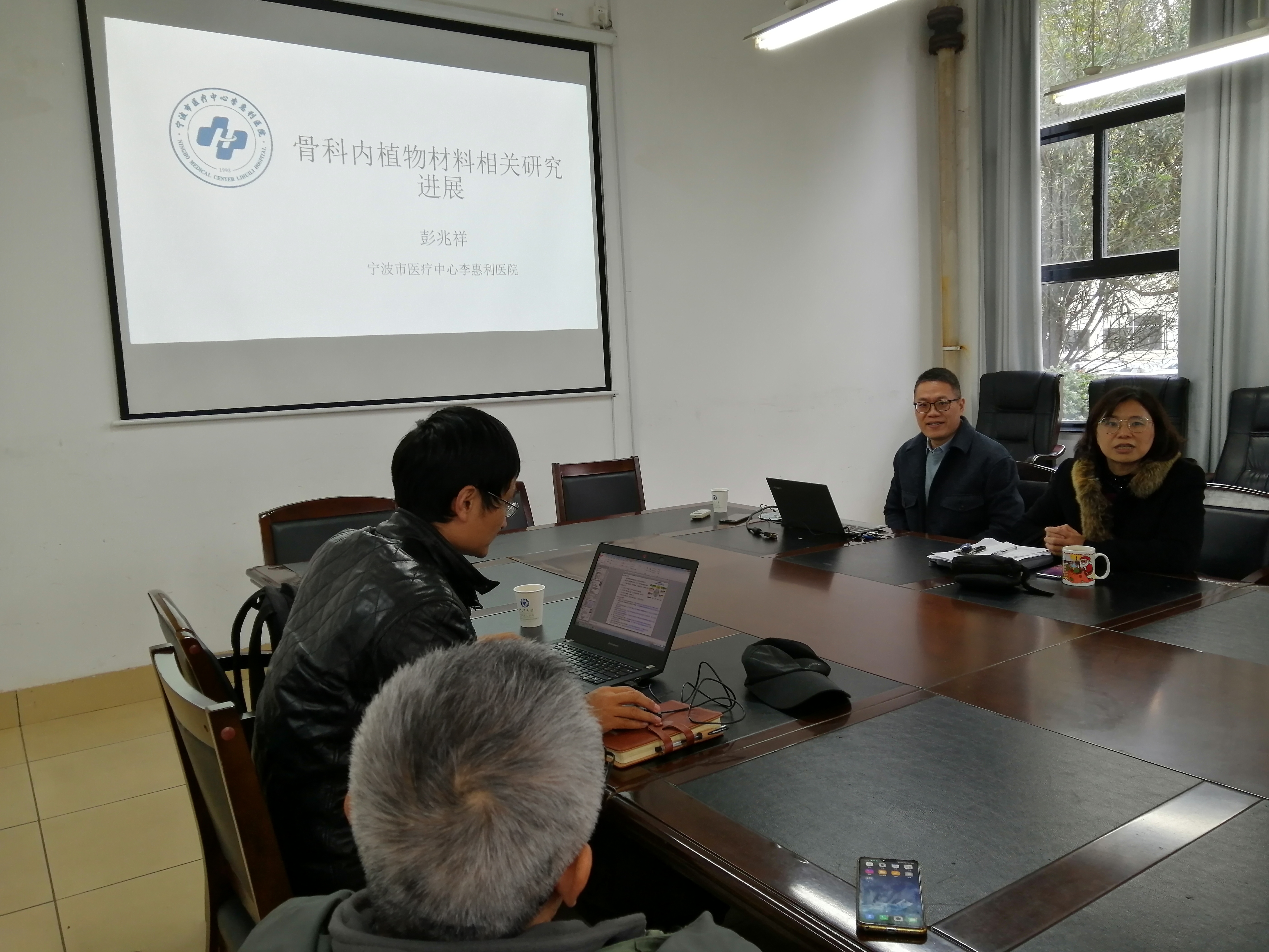 11月26日,宁波市医疗中心李惠利医院骨科主任彭兆祥医生作客生化学院,作了题为《骨科内植物相关材料研究进展》的学术报告。报告会由学院副院长沈昊宇教授主持。省重点人才计划专家、市3315团队负责人刘宏治教授,学校特聘教授陈正飞以及其他来自材料、化工、制药等领域的多名教师一同听取了报告,并结合各自研究领域与彭主任进行了深入交流和探讨,会场气氛热烈。大家纷纷表示,医学与工程的交叉融合未来前景是广阔的,科技的创新与交叉融合密不可分,学科之间的交叉融合与合作交流可以加速学科建设和专业建设,希望能与医学专家在人才培养、专业建设、学科发展等方面开展合作。