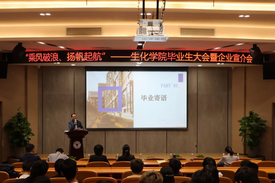 首先,生化学院党委副书记赵涵老师发表毕业寄语,对即将离开校园的毕业生们表达了慰问和关心,也为今天企业的宣讲进行了预热,同时对毕业生提出了几点要求,希望毕业生们都能做青春路上的奋斗者和追梦人!