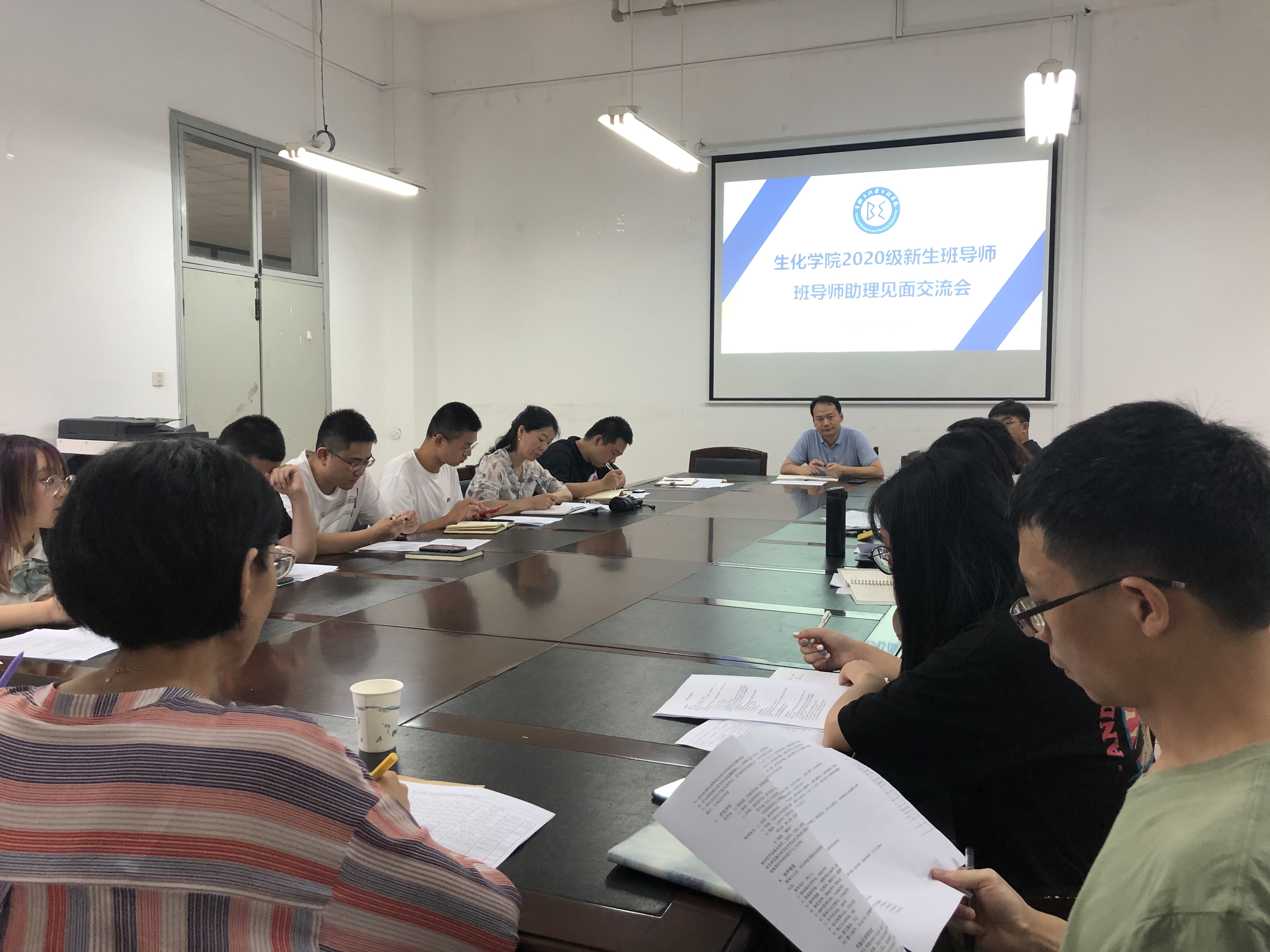 闫雪茹老师重点讲解了班导师和班导师助理的具体工作职责及内容,分别就新生报到事宜以及入校后在党建、资助、心理健康、学风建设等方面需要开展的主要工作进行了解释说明,对相关政策进行了详细解读。同时结合工作中可能遇到的重点、难点问题,与全体新生班导师进行了交流。