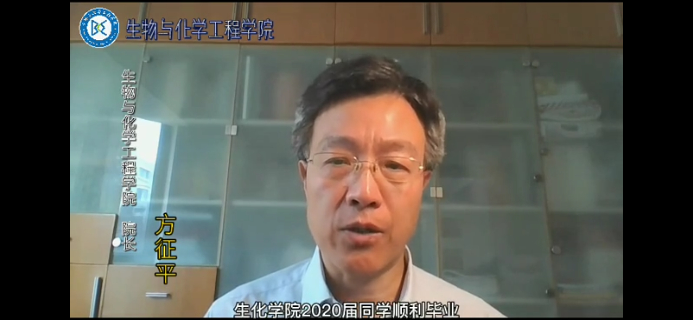 生化学院院长方征平教授代表全院向生化学院231名毕业生表示祝贺,在致辞中,方院长分享了学院取得的喜人成绩,同时他对2020届毕业生说道,你们在理工成长,生化的角落都布满你们成长的印记,生化永远是你们精神家园和坚强后盾。昨天,你们从五湖四海来到理工寻梦,今天,你们在理工顺利圆梦。他对毕业生们提出了三点要求:一是,要确立“终身学习”的人生理念;二是,要确立“勇于担当”的人生境界;三是,要确立“敢于创新”的精神品质。最后,他祝所有毕业生,前程似锦,一帆风顺。