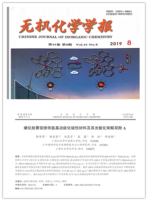 以化学工程与工艺专业2015级本科生郭冬菁为第一作者,我院教师胡美琴副教授为通讯作者的论文《磺化酞菁铝修饰氨基功能化磁性材料及其光敏化降解双酚A》发表在国内权威化学期刊《无机化学学报》,并被SCI收录。
