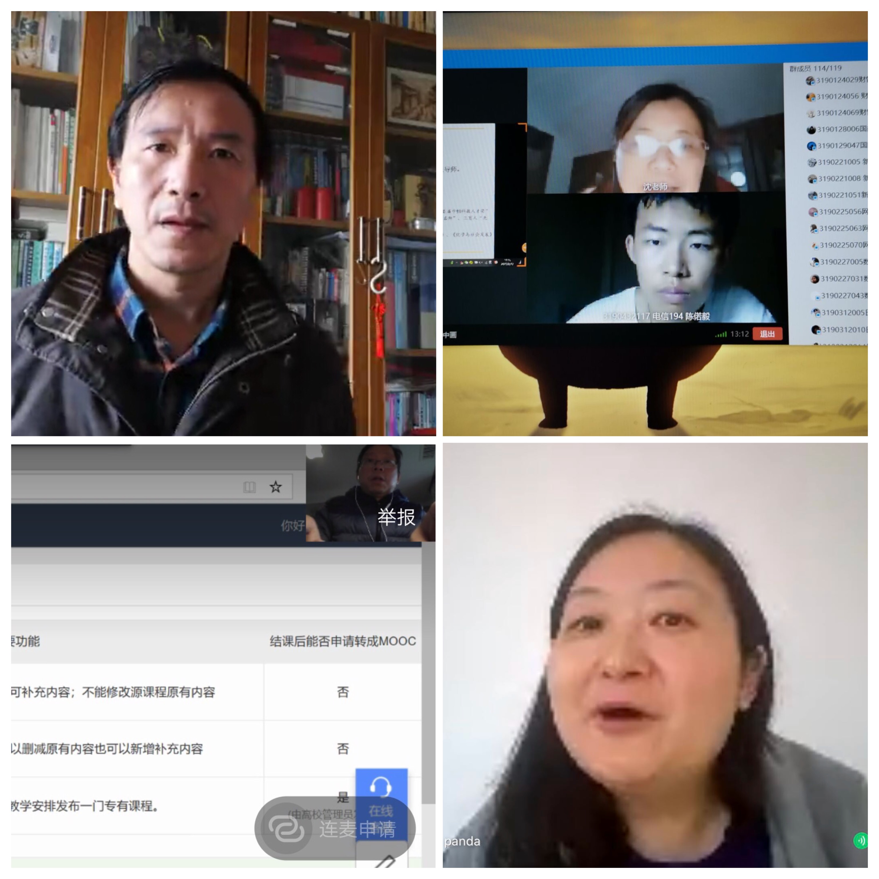陈珏、张华星、骆成才、陈飞组成的《有机化学》线上教学建课团队就做好线上线下相结合授课做了各项准备。四位老师整合教学资源,共同讨论和解决建课时碰到的各种问题,针对授课学生的专业差异性,适当调整教学内容,就不同专业的学生单独建课,结合专业特点进行有机化学知识讲解。