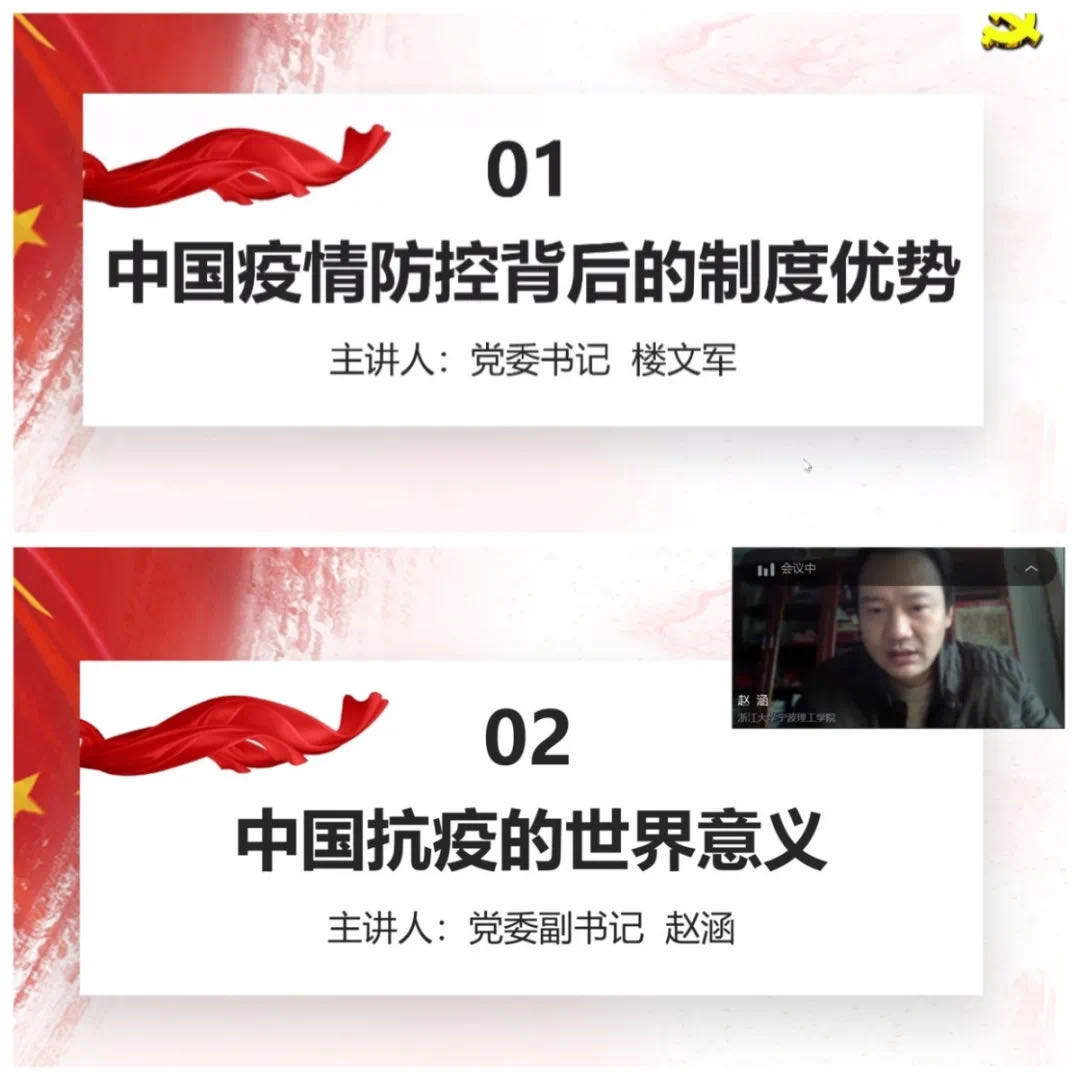 生化学院党委召开“众志成城,共克时艰”全体学生党员网络视频会议,开展了依次特殊的爱国主义网络课。党委书记楼文军以“中国疫情防控背后的制度优势”为题做了视频讲座,教育生化学子进一步坚定“四个自信”,强化政治认同、思想认同、情感认同,不断激发爱国之情、强国之志、报国之行。党委副书记、纪委书记赵涵以“中国抗疫的世界意义”为题,就华尔街日报等媒体的不当言论等实例,引导同学们正确认识中国在这场疫情攻坚战中为世界作出的贡献,深度诠释了大国担当。之后,全体学生党员围绕“中国抗击疫情举措凸显的制度优势”和“中国抗击疫情中升华的爱国主义”两个微话题展开激烈讨论,何玲颉、廖冠英、张蓉开等多名学生党员纷纷发表自己的微观点,引来同学们的共鸣。