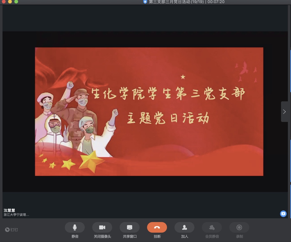 这次突如其来的疫情让我们认识到许多平民英雄,他们在国家危难之际主动担起重任,坚守在抗疫第一线,以勇敢的逆行姿态告诉了我们什么是担当,什么是责任。因此在3月5日学雷锋日,生化学院学生第三党支部通过钉钉视频会议开展了“疫情下的青年责任担当”主题党日活动。分享防疫期间的英雄人物、感人事迹和身边的青年榜样。