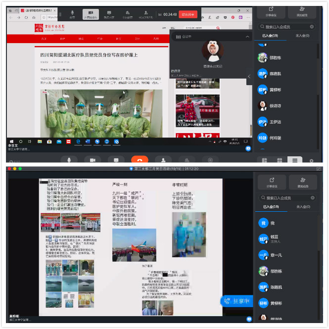 通过党员们的分享,我们认识了武汉方舱医院清洁突击队的8名退伍军人,虽然已经退伍但内心不曾褪色,国有难,召必回!四川简阳援湖北医疗队的同志们主动亮出党员身份,让人民放心,让祖国宽心,简单两个字浓缩了很多人,它不再只是一个身份,它是我们共同的名字;李文亮医生恪尽职守,我们为他的逝去悲痛,只能用团结和胜利告慰人民英雄。平凡中现伟大,英雄就在我们身边,身残志坚的预备党员主动报名做志愿者,退伍大学生主动站岗值班,为执勤民警送口罩的市民,积极献血的大学生,只因“我是中国人,祖国哪里需要他们,他们就在哪里。