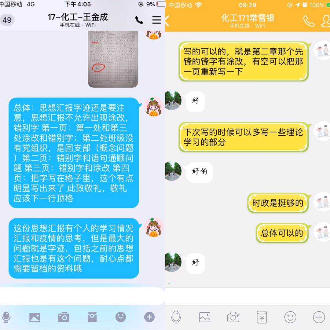 积极分子群体是支部发展的后备军,是支部党员的责任田。疫情防控期间进一步加强积极分子的考察培养,线上思想汇报批注修改,交流互动满满是温度。