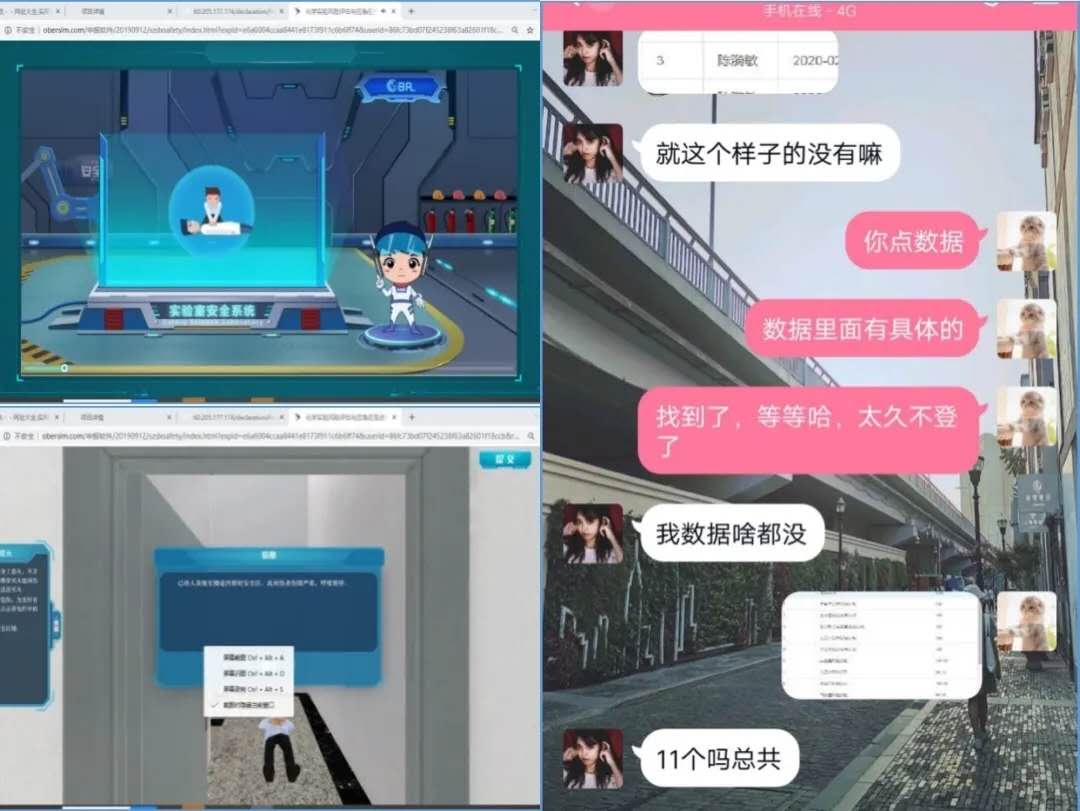 基础化学实验课程组的老师通过精选国家虚拟仿真实验平台的4个项目进行虚拟仿真实验,结合QQ、钉钉等在线直播和线下答疑混合式教学。期间老师也会以学生身份登录学习,以解决学生可能遇到的难点,确保正常教学开课。