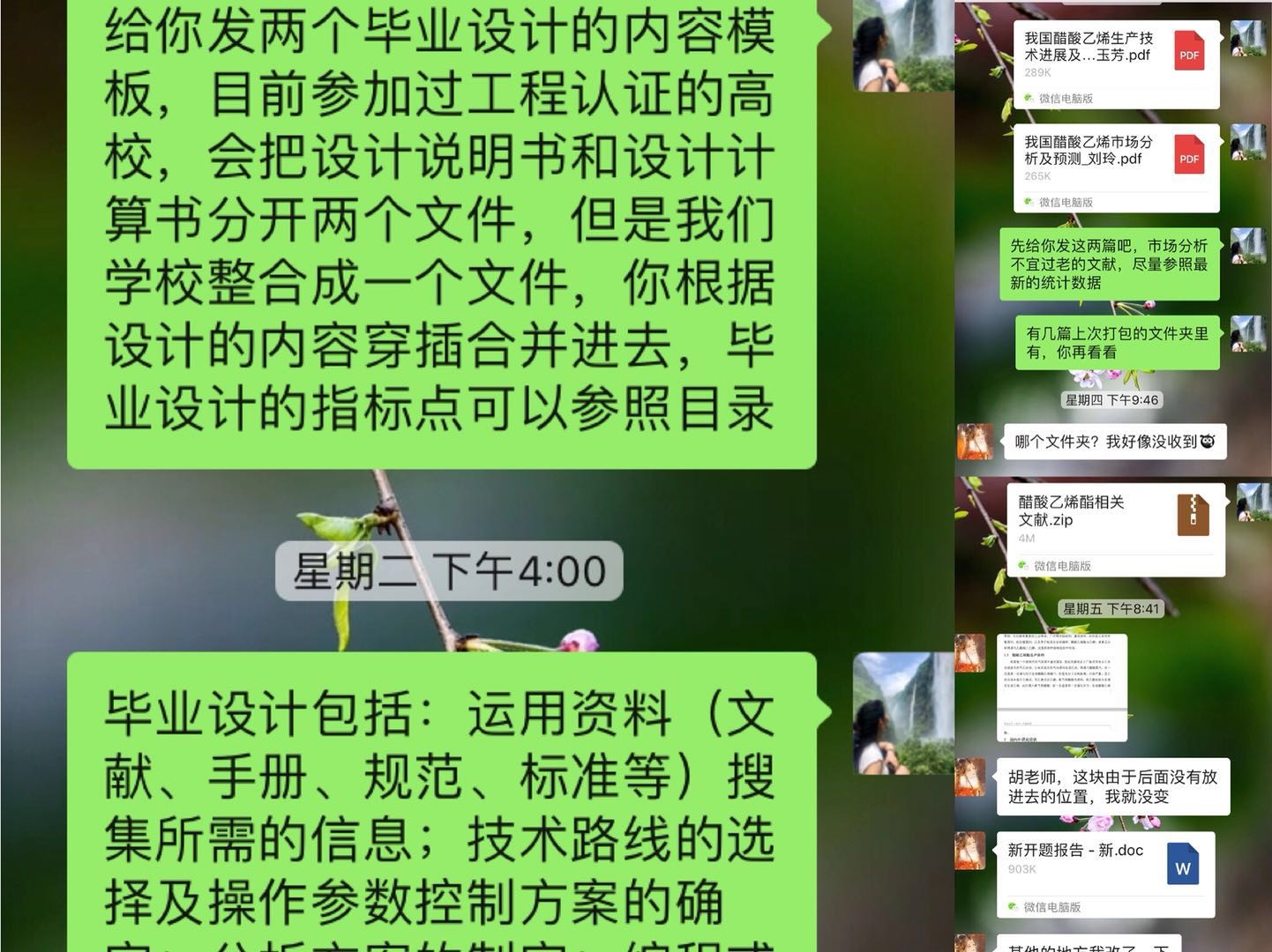 毕设困难早分析,预案先行保无忧。胡美琴老师则在3月初就主动和同学们进行电话沟通,对保留还是更改选题的利弊进行了分析。对于前期开展实验完成度较高的同学,胡老师建议保留课题的方案,督促同学们提前撰写论文框架,合理紧凑设计实验路线,争取在最短的时间内完成实验数据的采集。对于前期实验完成度不高、或者实验不确定因素较多,预计实验耗时较长,存在无法短期内完成实验风险的同学,则建议更改为化工设计类选题。