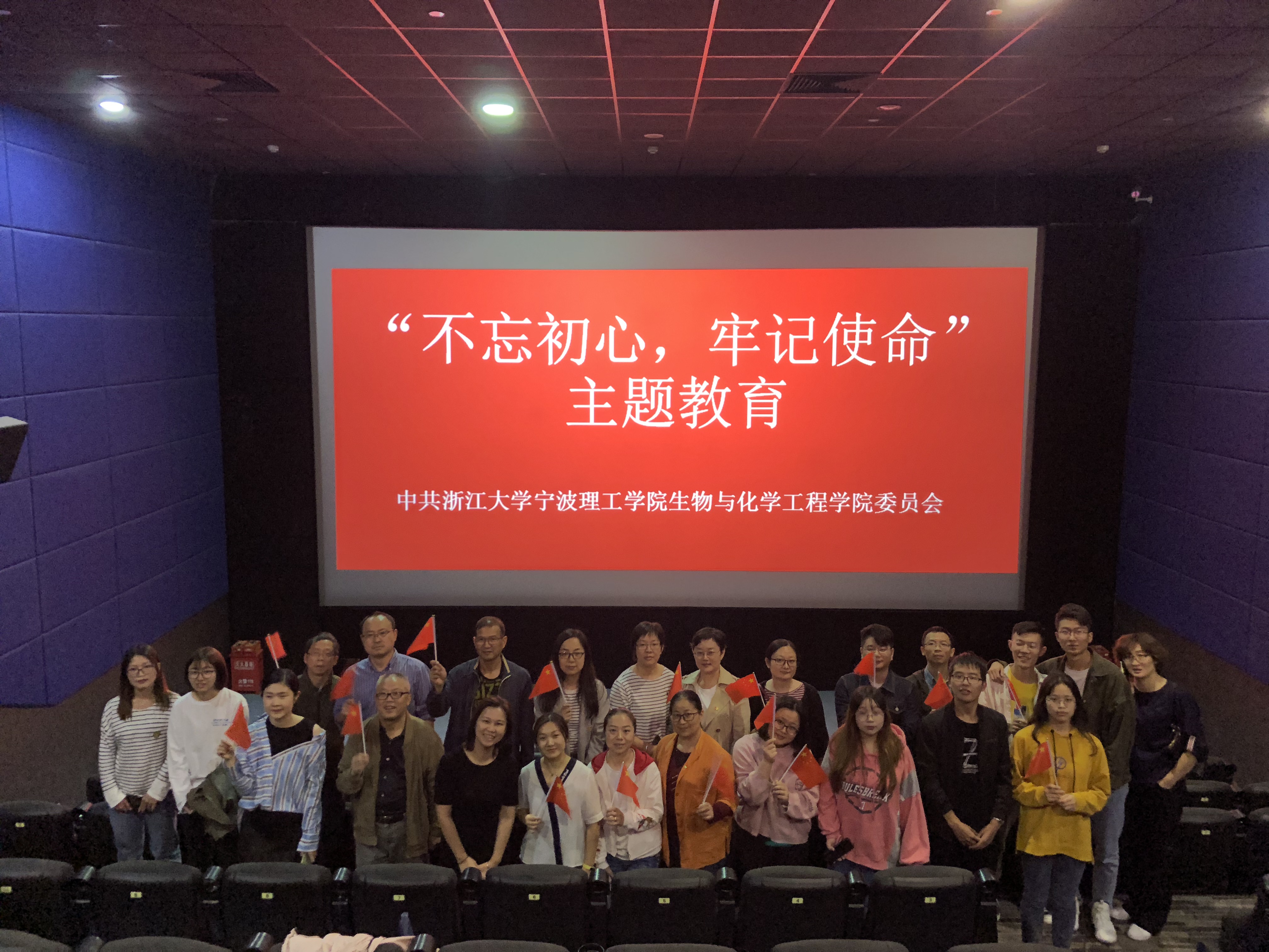 为深入学习贯彻党的十九大精神,庆祝新中国成立70周年、建党98周年等重要时间节点,增强师生党员爱国爱党意识,生化学院党委组织全体师生党员开展了“不忘初心、牢记使命”主题观影活动。为庆祝中华人民共和国成立70周年,在2019年10月21日和22日分别观看了《我和我的祖国》《中国机长》两场爱国主题电影。