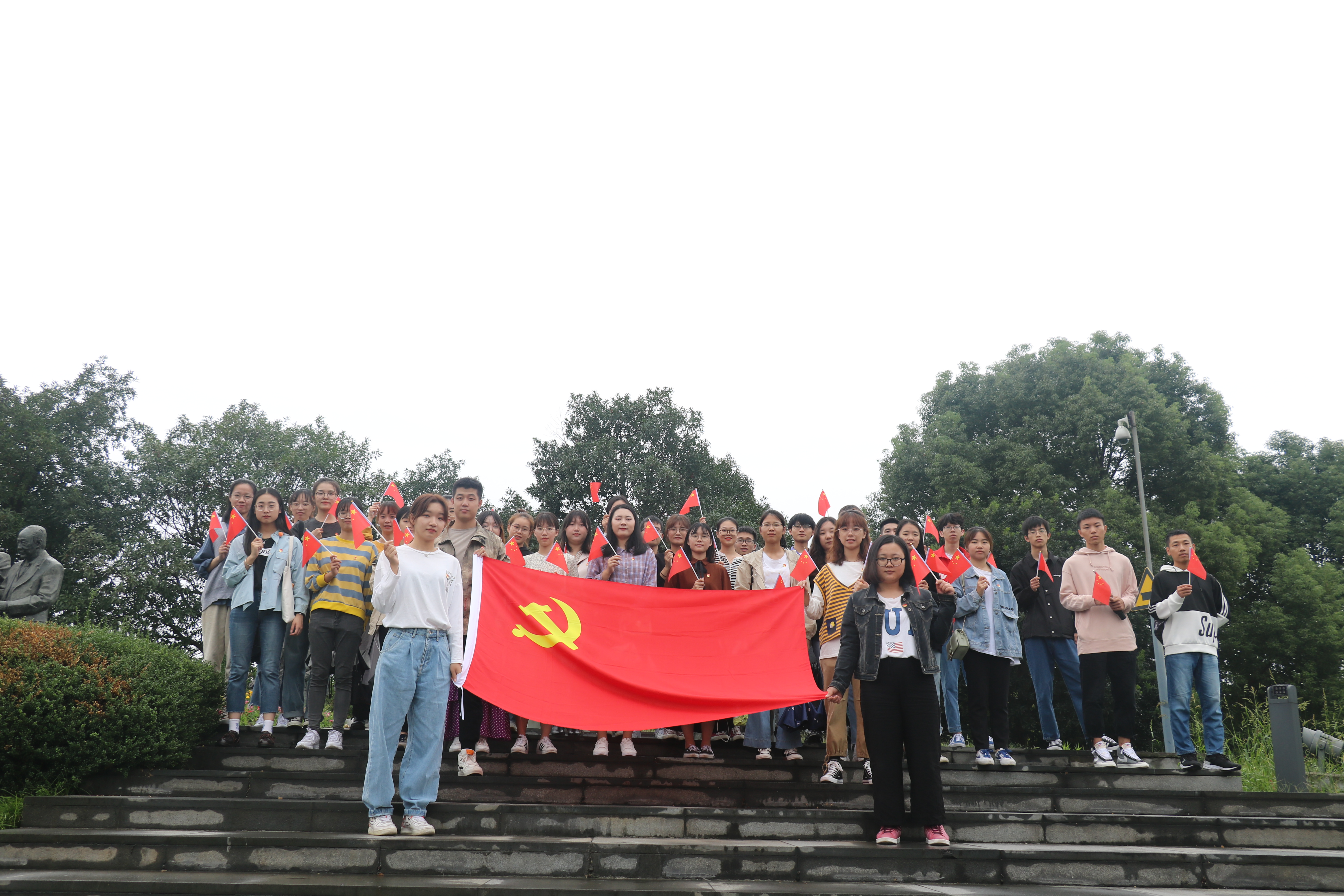 第一站——院士公园瞻仰,钟灵毓秀的宁波大地孕育了一大批科学家,众多甬籍院士为中华民族的科学发展和文化繁荣作出了积极的贡献,在社会主义建设时期建立了卓越的功勋。第一支部学生党员与部分入党积极分子来到院士公园,在甬籍院士铜像前,大家手握五星红旗,胸前别着党徽和团徽,一同唱响红色歌曲,讲述院士故事,重温入党誓词。和百名院士时空对话,让党员在宁波浓郁的“院士文化”中接受熏陶,筑牢理想信念,迈开青春脚步,秉承求是精神,扛起民族复兴的大旗。