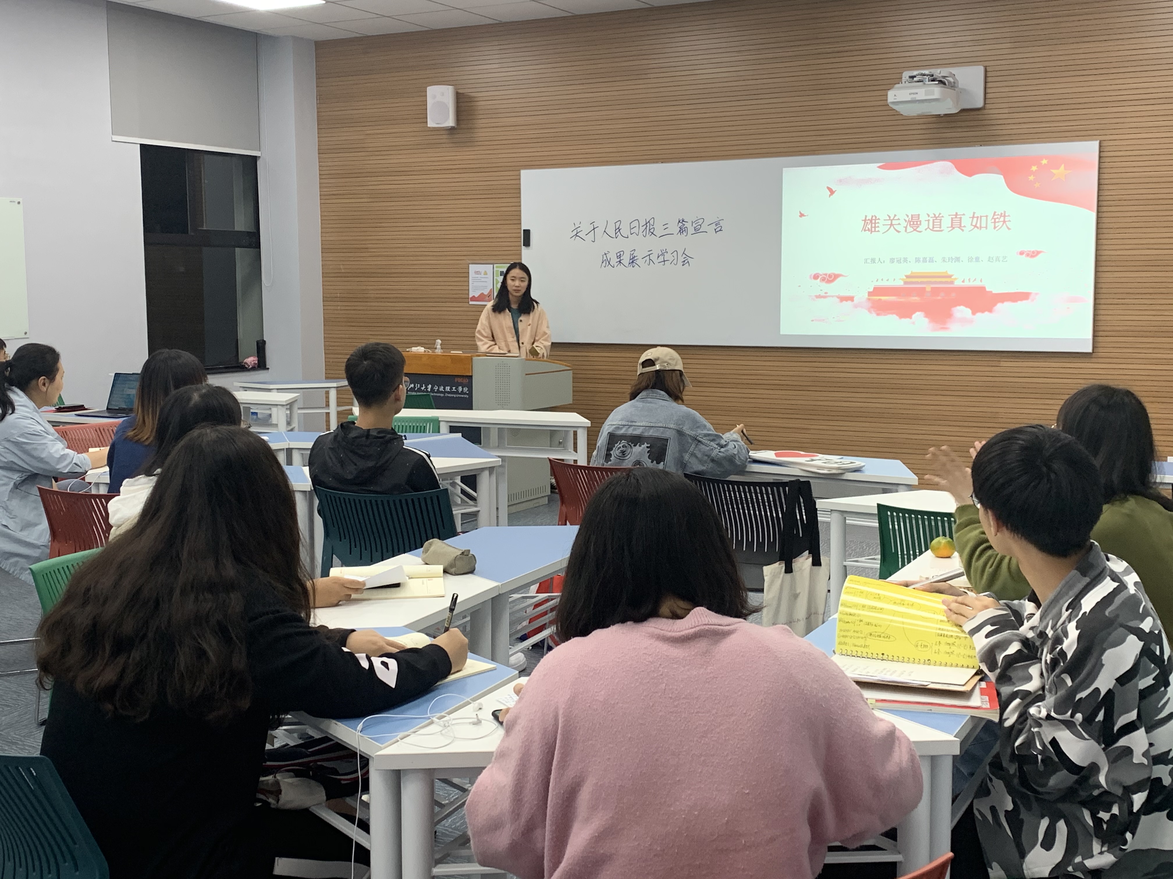 创新学习形式,推动主题教育入脑入心,生化学院学生第一党支部于2019年10月21日开展了“雄关漫道,长风破浪”人民日报三篇宣言主题学习会。