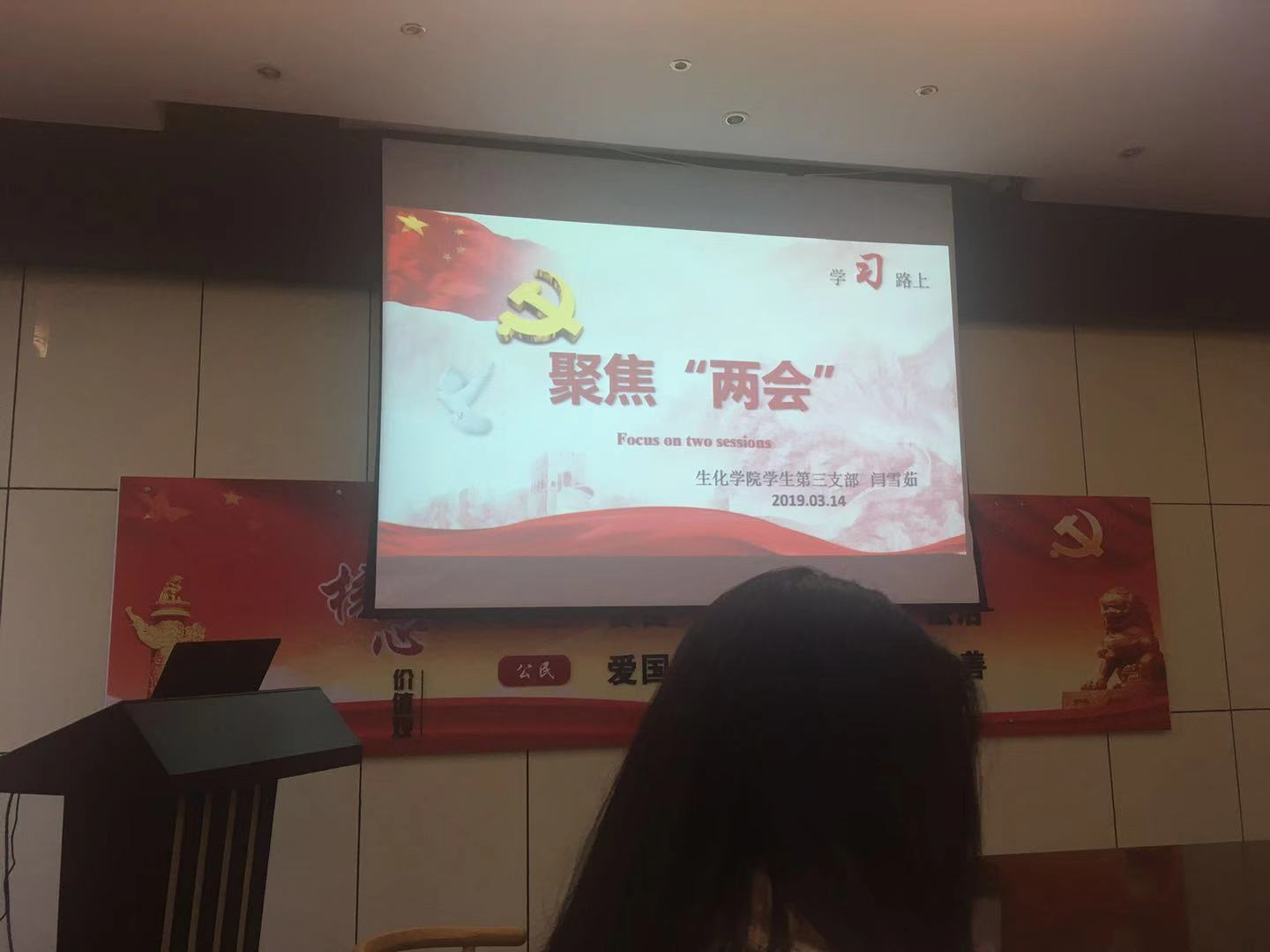 为促进支部党员对“两会”知识的深入了解,提高支部党员的学习意识,生化学院学生第三党支部于2019年3月14日15:45在NE209召开了“两会”知识微型党课大赛。大会由学生第三支部书记闫雪茹主持,全体支部党员参加。