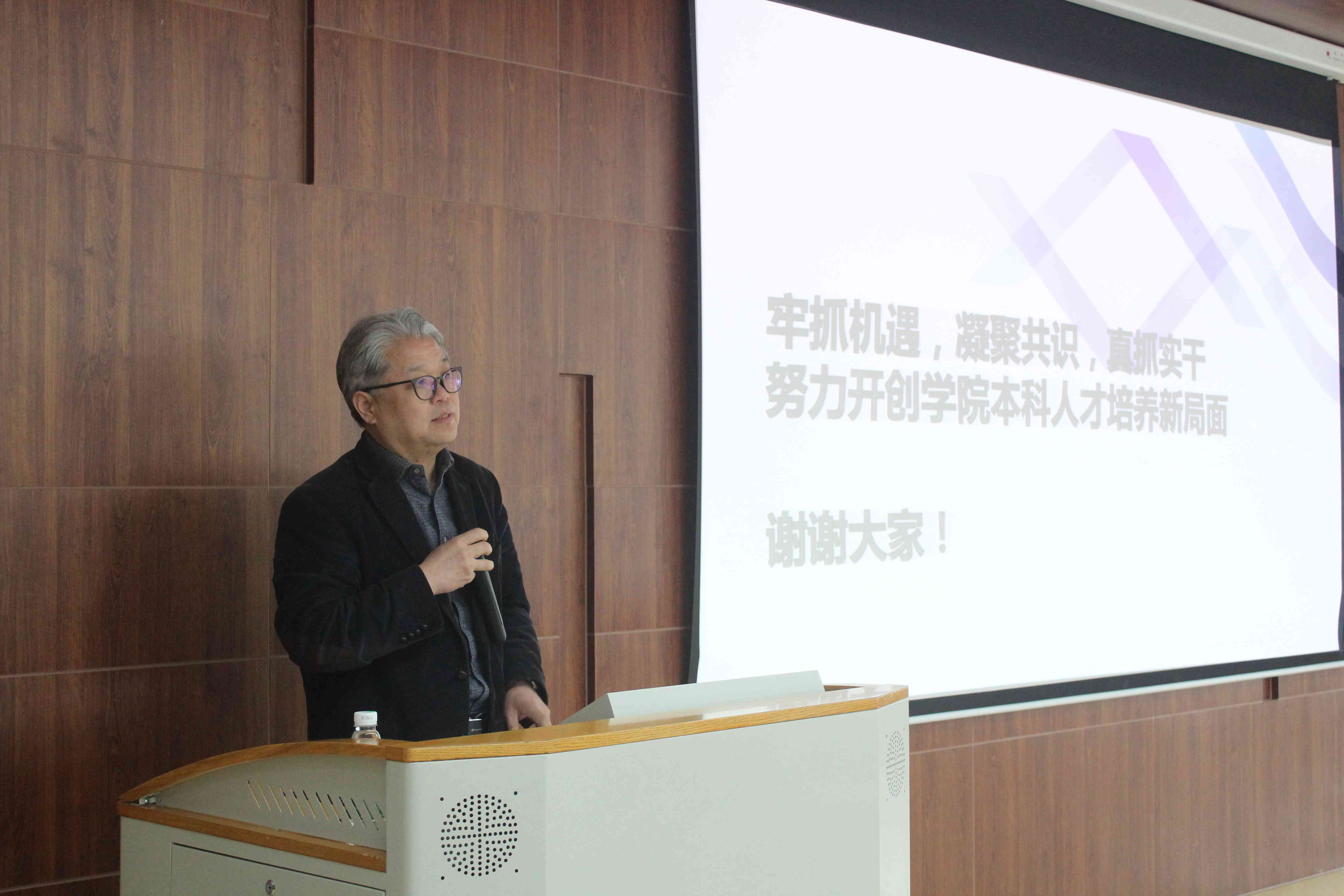 上午,学院院长方征平作了题为“统一思想,凝聚共识,抢抓机遇,开创学院本科人才培养新局面”的工作报告。方院长从“四期叠加”、“办学理念”、“优化专业结构”、“三年行动计划”等四个方面传达了学校本科教育工作会议精神,并结合学院工作实际,从工作特色、工作整合、校企融合、教师斗志、学风建设等5方面对本科教育主要问题进行了深刻剖析,提出了制订学院《本科教育行动计划实施方案》、推进学科与专业建设、学风建设、创新创业教育与实践、校企深度融合等工作设想和举措。方院长特别强调,学校本科教育工作会议是在我校转型升级的关键时期召开的一次重要会议,拟定的三年行动计划是下阶段学校抓好本科教育的纲要性文件,对学校在新的发展阶段建设高水平本科教育、提升人才培养质量具有十分重要的意义,他希望老师们能够转变思想观念,跳出原先“独立学院”的固有认知,从“高水平公办普通本科高校”的高度来思考本科教育工作,在学校推进建设高水平本科教育的过程中抢占发展机遇,开创学院本科人才培养的新局面。