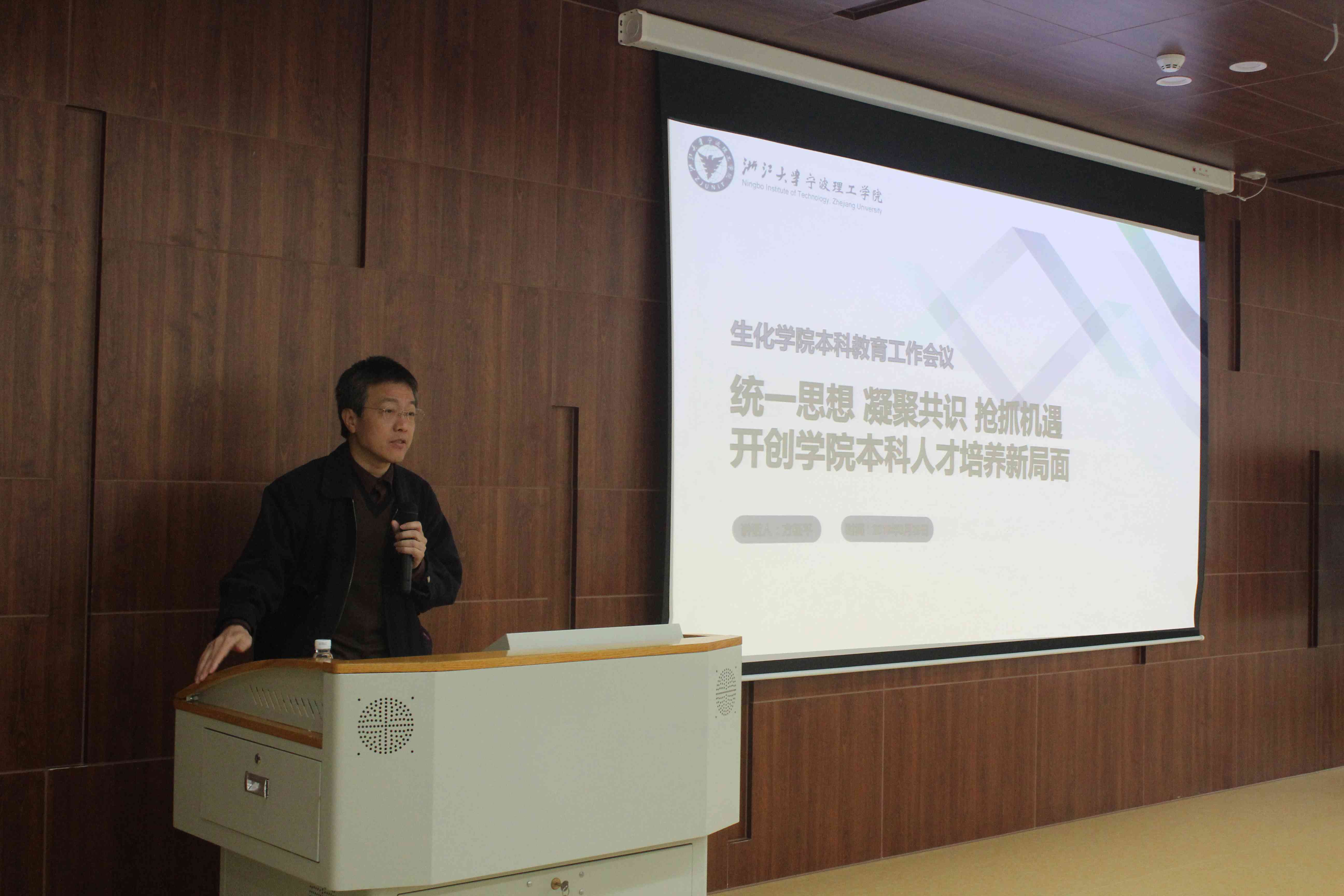 梅乐和副院长对生化学院能够积极落实学校重点工作、及时召开本科教育工作会议表示了充分肯定,并对学校“转公”、专业结构优化、考研深造、学科竞赛等具体问题进行了说明。他指出,本科教育是涉及到专业布局调整、教师教学评价、人才培养方案设计等诸多方面的复杂系统工程,需要我们群策群力;希望生化学院广大教职员工能够统一思想认识,将思路转化为行动,为学校推进建设高水平本科教育贡献力量。
