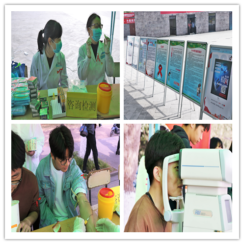 本次活动的内容包括:艾滋病相关问题的调研、艾滋病检测等专业性活动,以及眼病咨询、血型检测、视力检查等公益服务。活动一开始便吸引了许多的理工学子参与,医护人员还向同学们普及了辨别血型的方法,激发了同学们的参与热情。场地旁边关于艾滋病预防知识的相关展板,制作别致、内容详细,实用的专业性知识为前来学习参观的同学阐明了艾滋病的严重性以及预防艾滋病的注意事项和相关措施,让同学们对此有了较为透彻的了解。