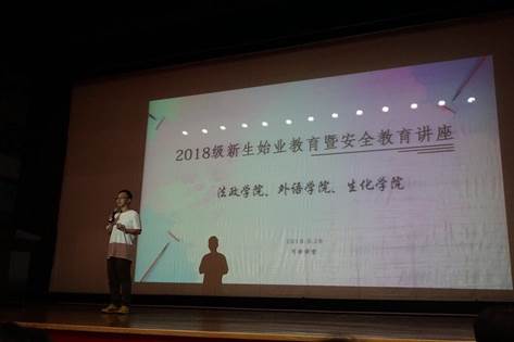 9月26日下午,2018级新生始业教育暨安全教育讲座在可珍讲堂举行。本次讲座旨在让学生进一步地了解学校教学相关内容和安全防范知识。参加讲座的主要有生化学院、法政学院和外国语学院的2018级新生及各学院辅导员。