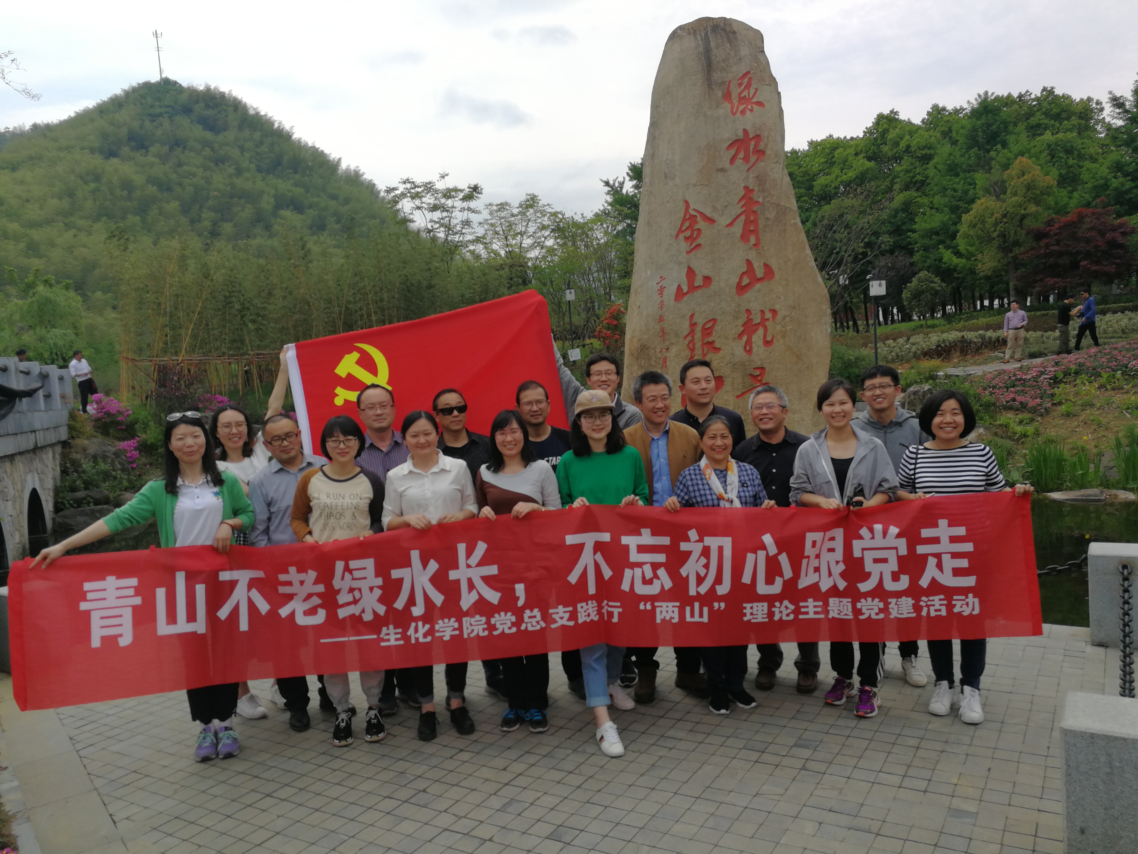 2018年4月21日,生化学院党总支来到安吉余村,开展践行“两山”理论主题党建活动,生化学院院长方征平、党总支书记金志华及近20名教工党员参加了本次活动。