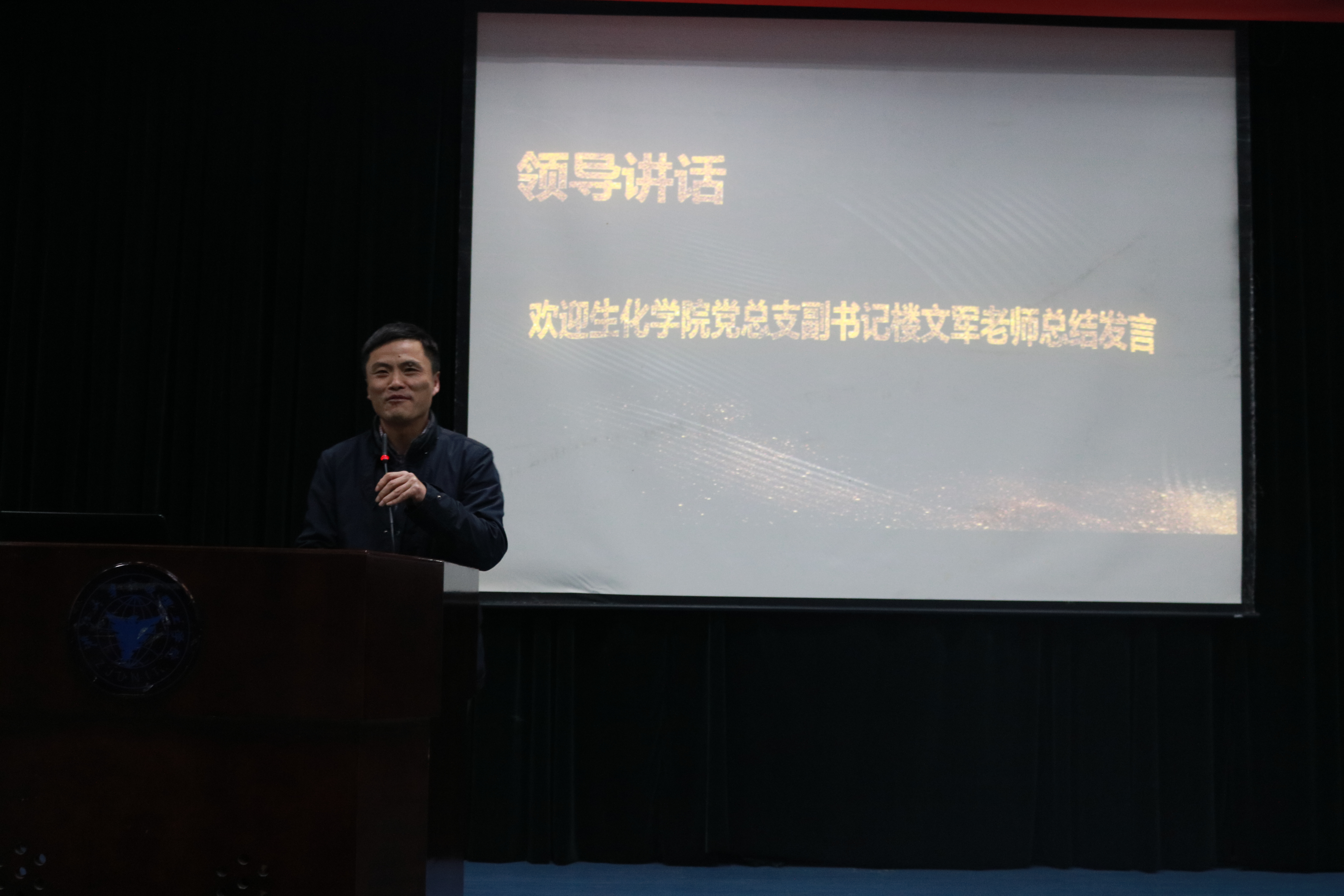 大会最后由生化学院党总支副书记楼文军老师做总结发言,他点出了开展表彰大会及创新文化艺术节的意义,并着重提到了生化学院最青年人物的评选,希望生化学子要求真务实,向这些在各个领域表现突出的生化人学习,因为他们是生化精神、理工精神最好的载体。