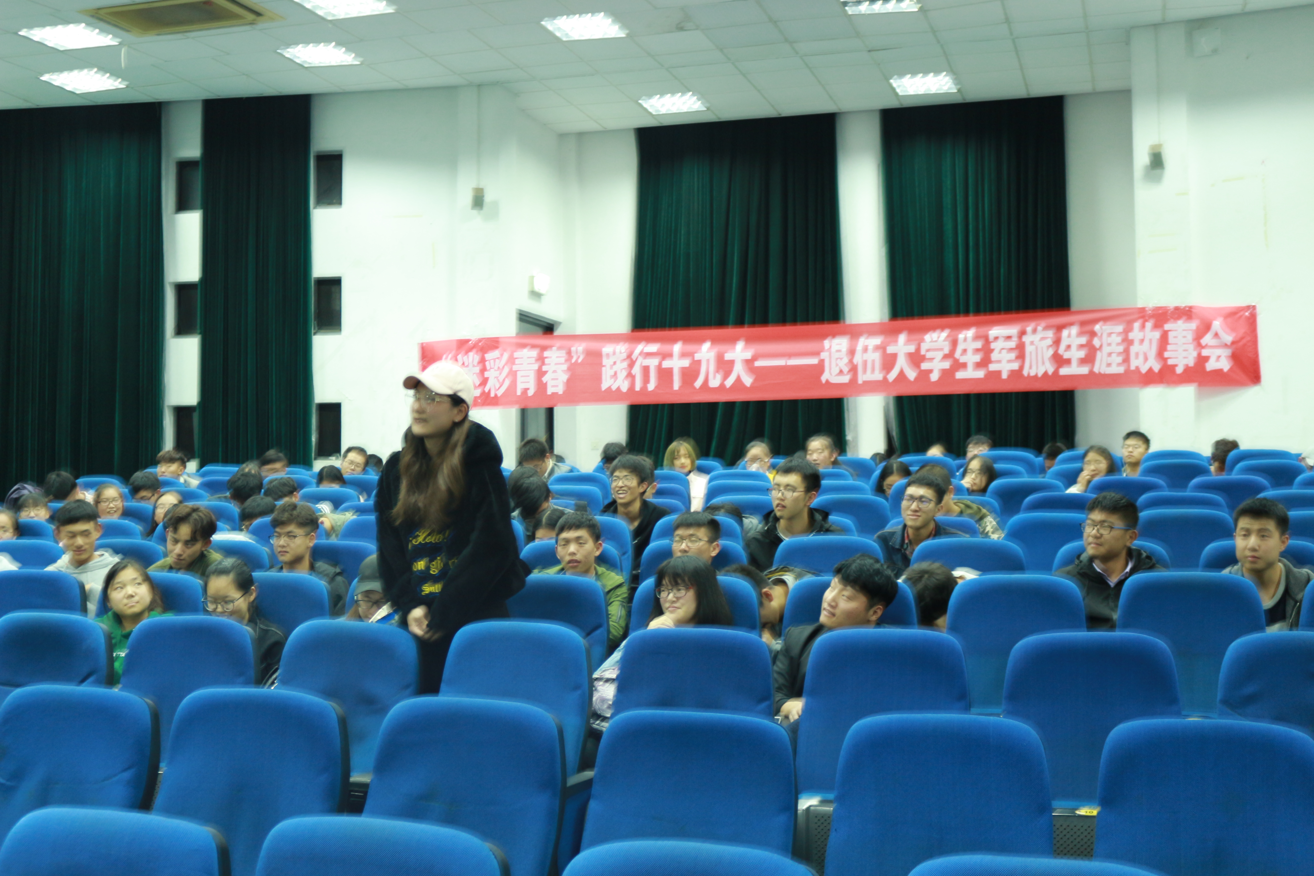 本次故事会是由学校人武部、生化学院共同发起的一次树立身边榜样、践行十九大精神的爱国主义教育活动,同时作为生化学院新生始业教育,对于增强青年学生的历史使命感,做好大学生学业、职业规划,也具有启发和教育意义。据了解,近五年来我校应征入伍学生累计109人,通过部队的锻炼,综合素质明显提升,返校后在同学们中间起到示范榜样作用。