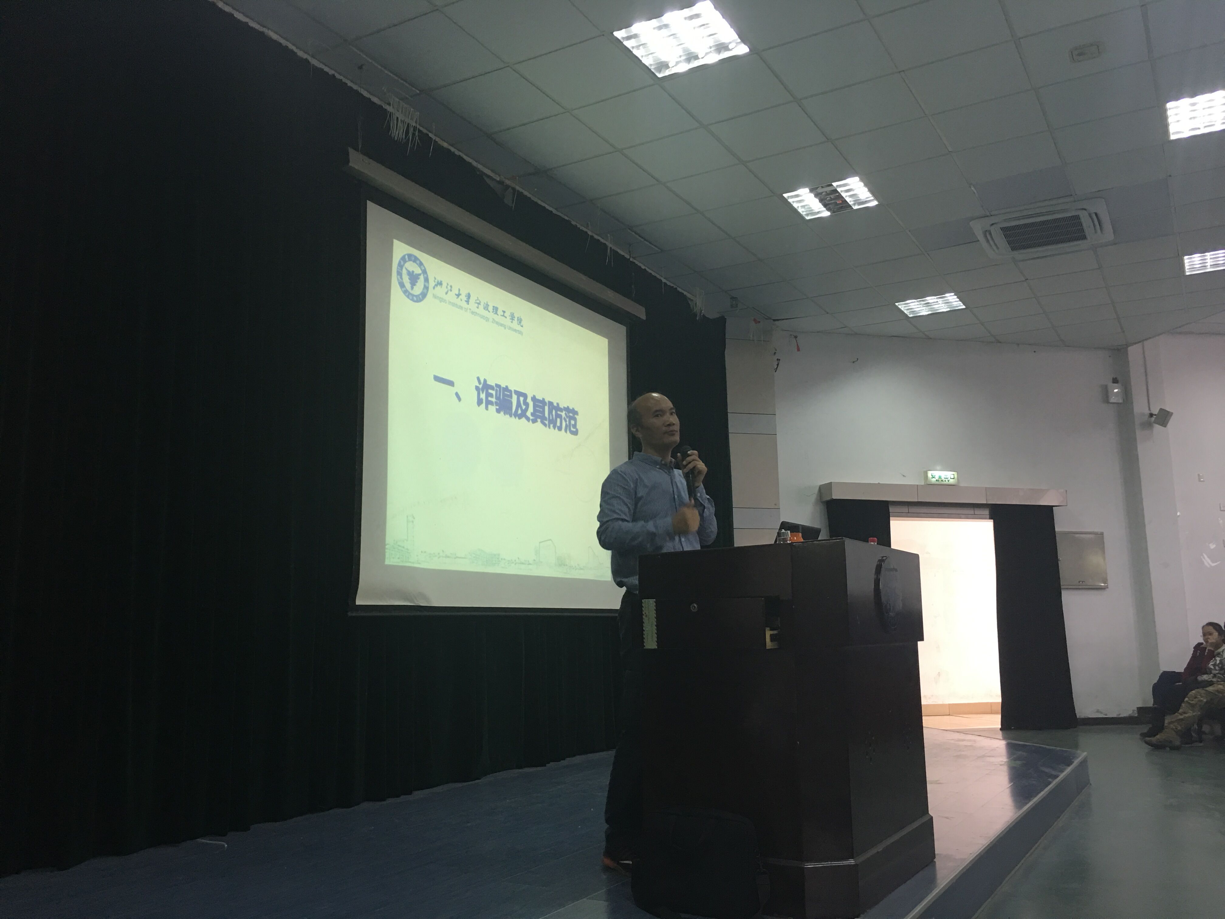 在讲座的的最后,张硕老师提出:希望新生们能够随时注意自己的人身、财务安全,学会保护自己,同时也要遵纪守法,不要误入歧途,要让自己成为一名青春、文明、向上的大学生。